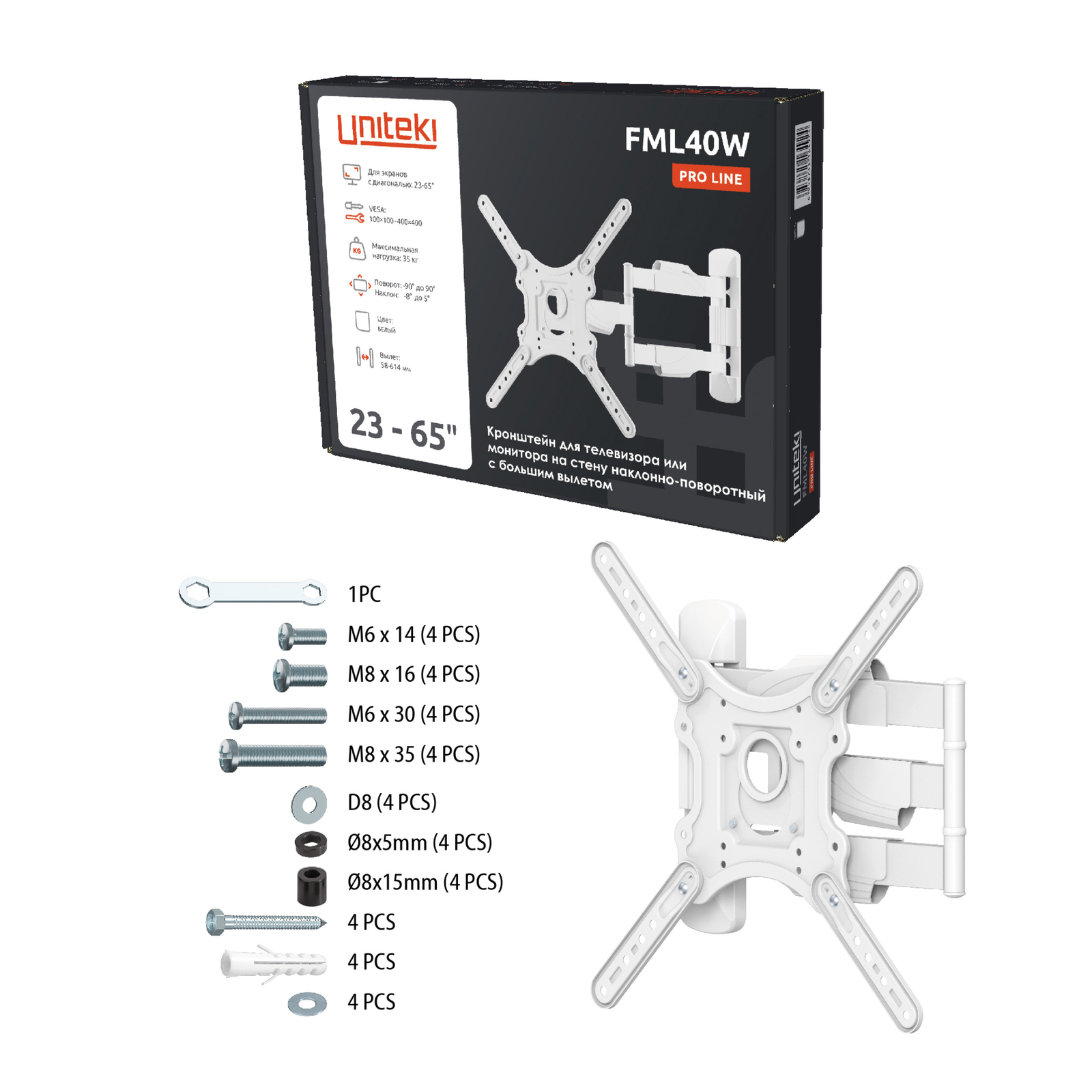 Наклонно-поворотный кронштейн UNITEKI FML40W отвечает высочайшим стандартам качества.
