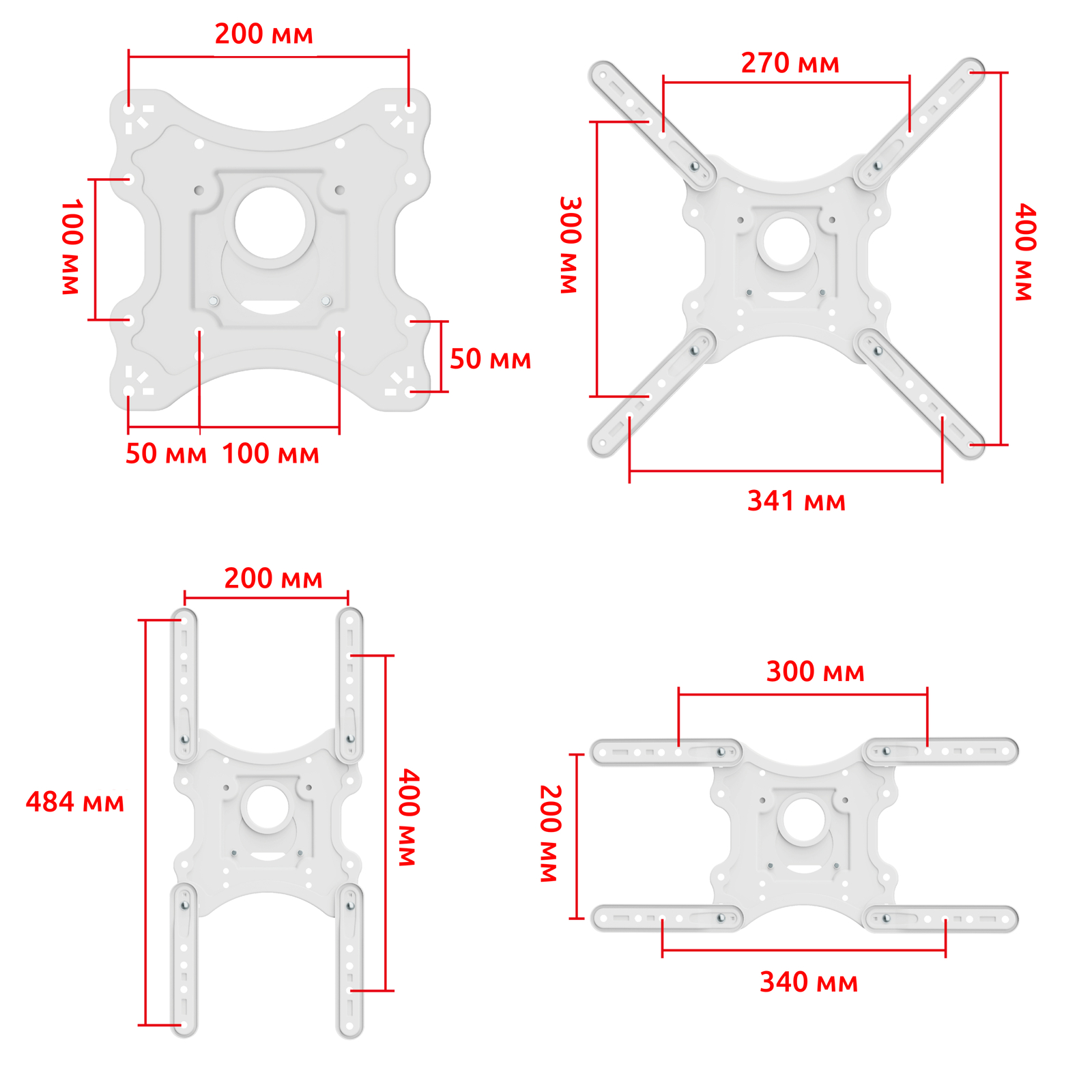 - Крепежные отверстия VESA, (мм.): 100x100, 200x100 , 200x200, 300x200 , 200x300, 300x300 , 200x400, 400x200 , 300x400, 400x300, 400x400