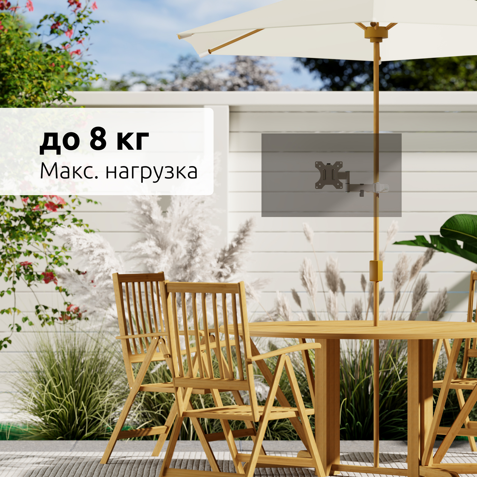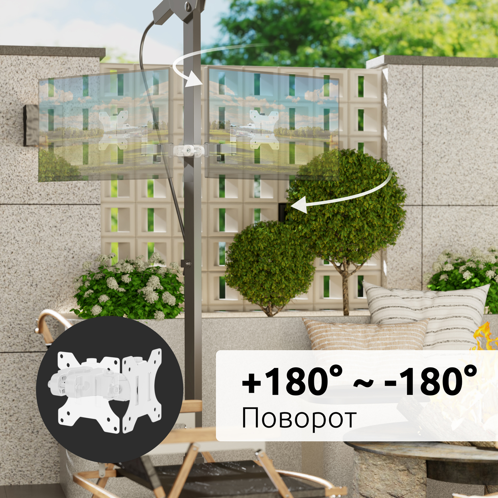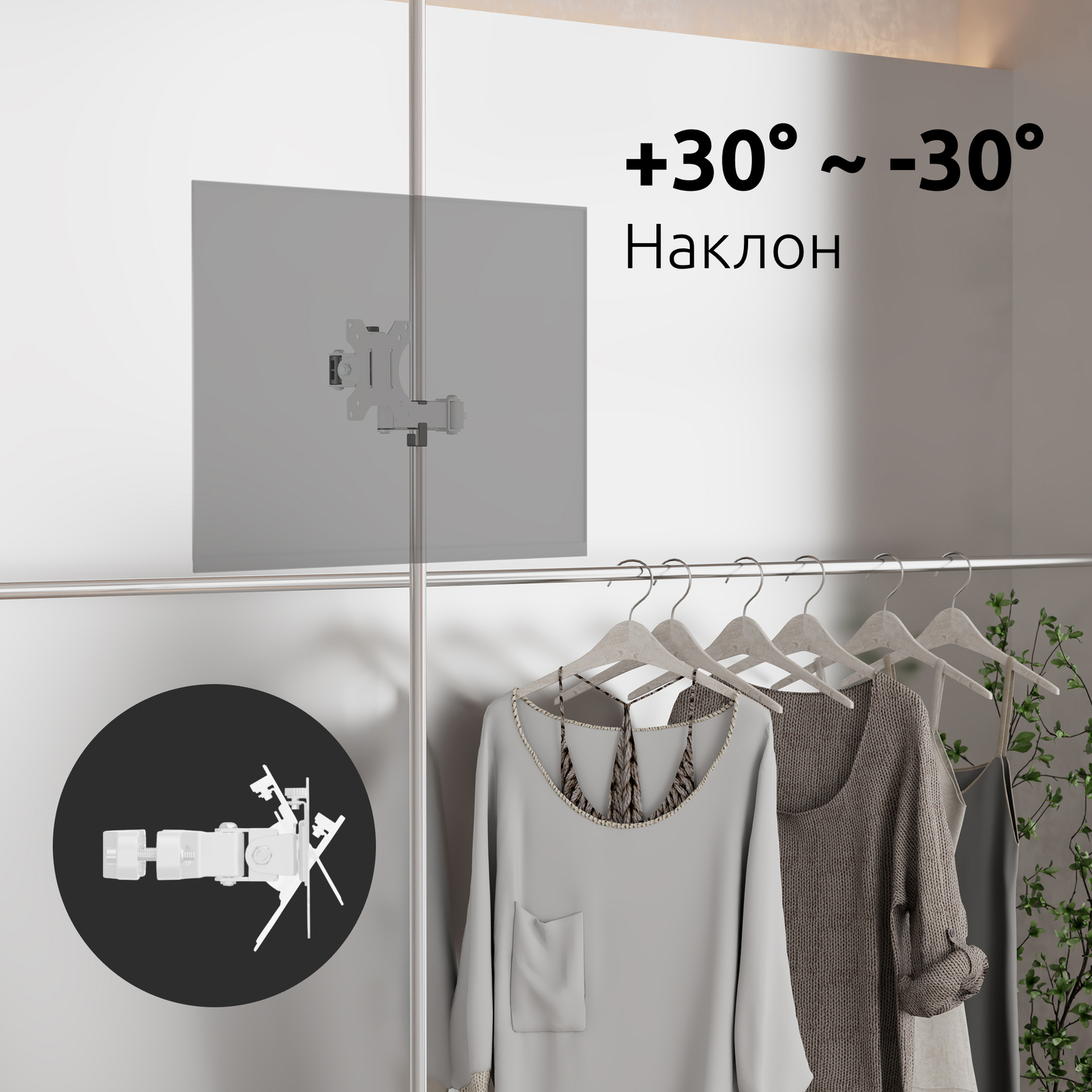 - Тип кронштейна: На трубу, наклонно поворотный быстросъемный для телевизора или монитора
