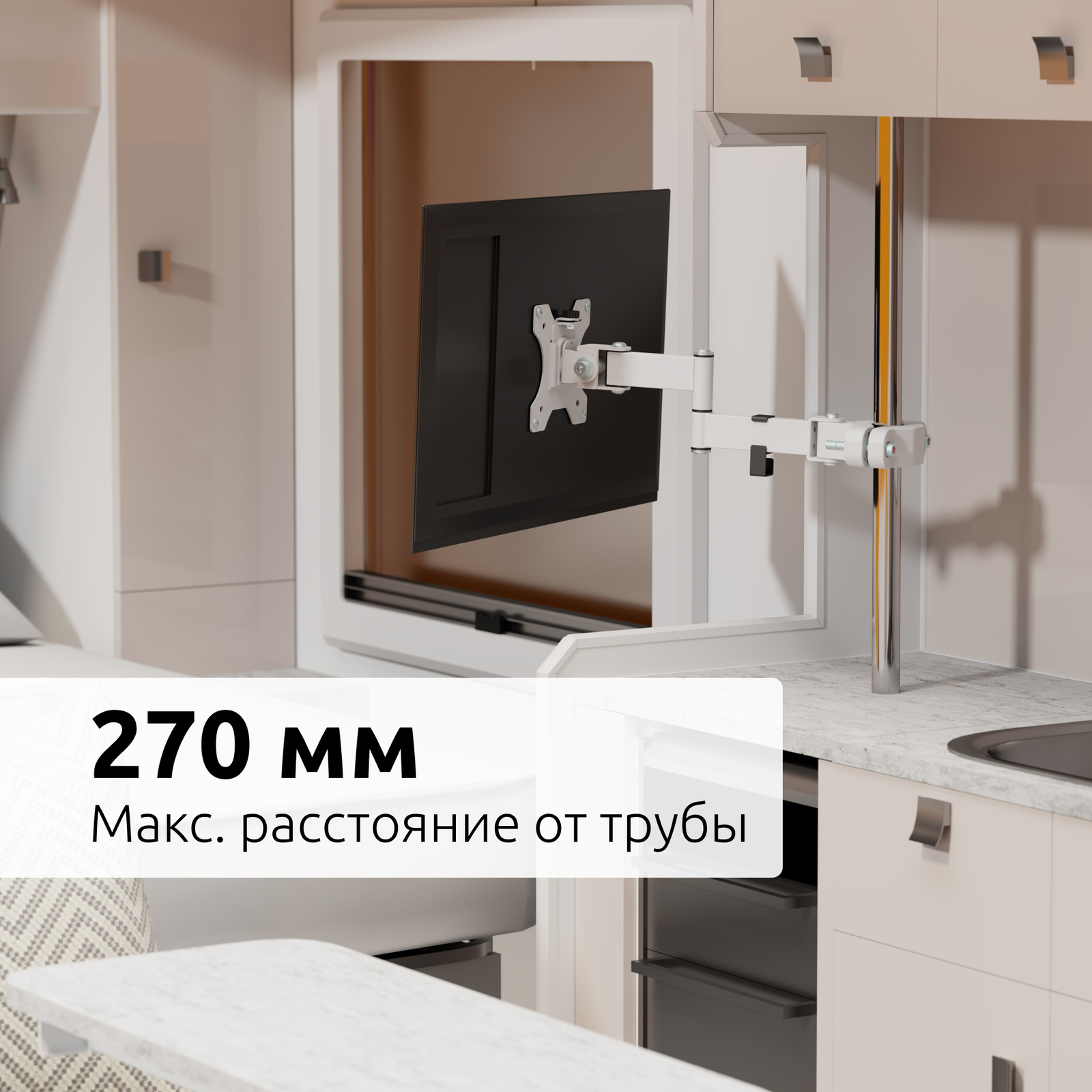 Вы сможете повернуть телевизор или монитор и изменить расстояние от трубы лёгким движением руки, при этом телевизор или монитор зафиксируется в настроенном положении.