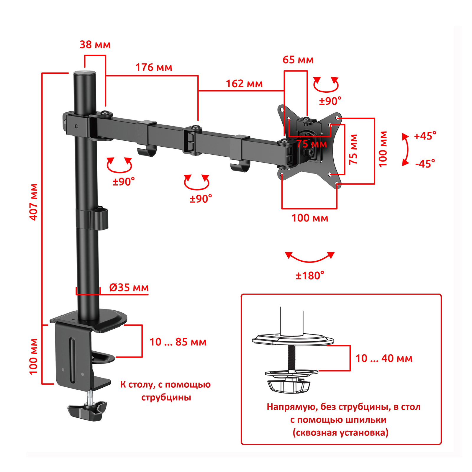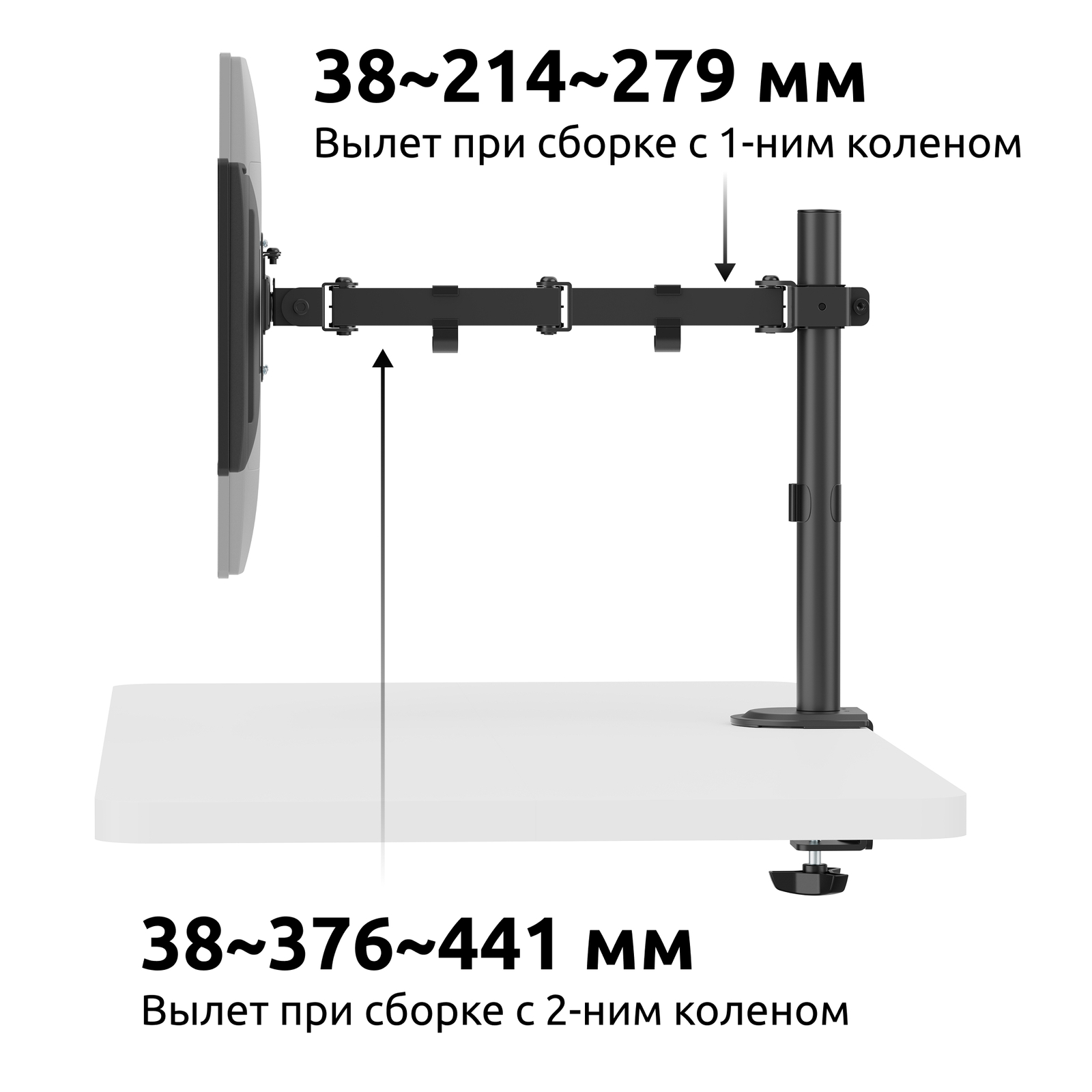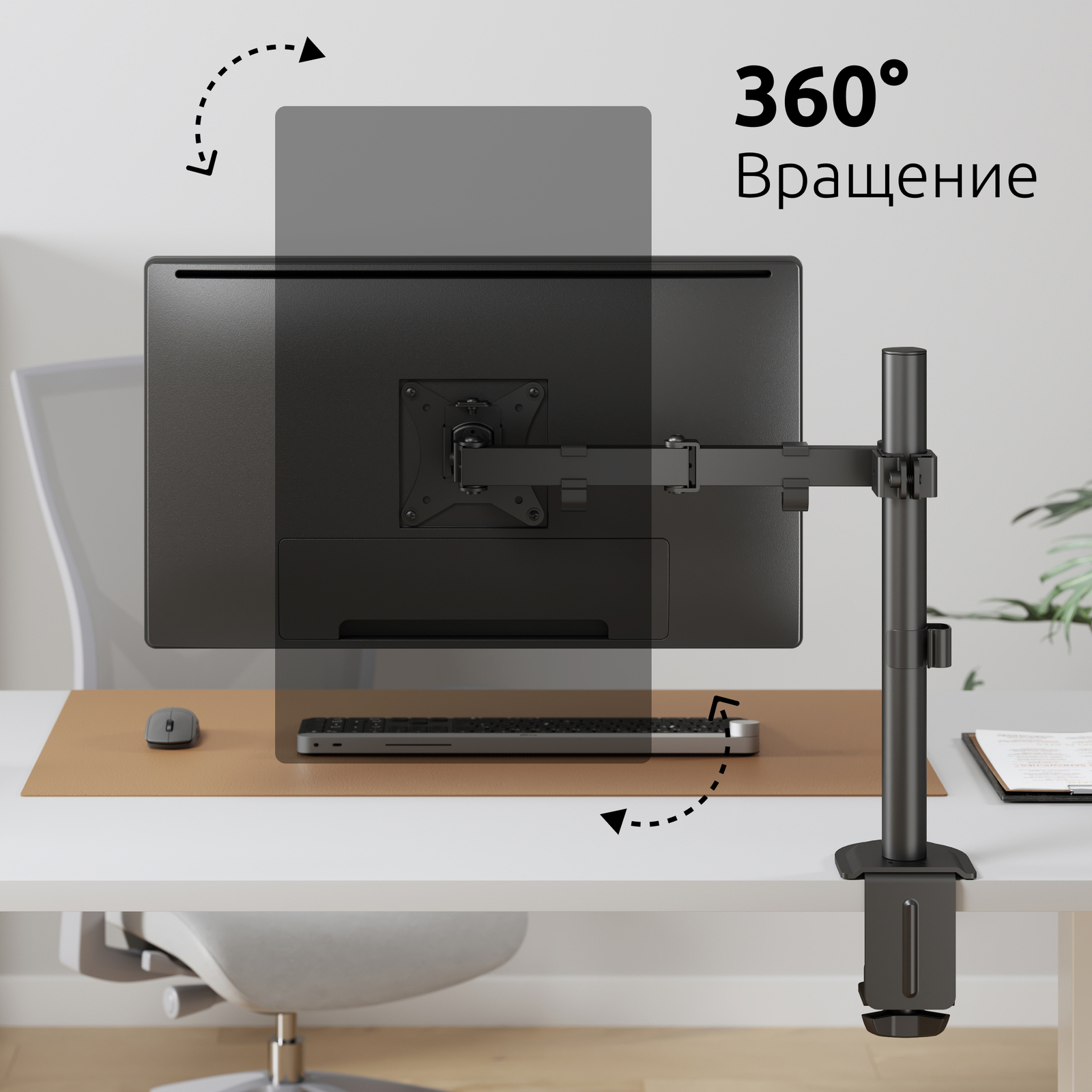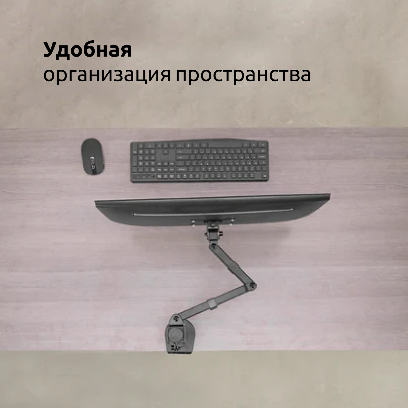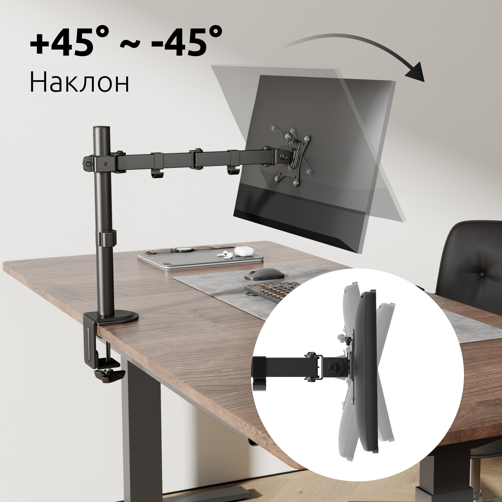Кронштейн для монитора с вылетом на стол (к столу) со струбциной, наклонно поворотный, диагональ 17-34 дюйма