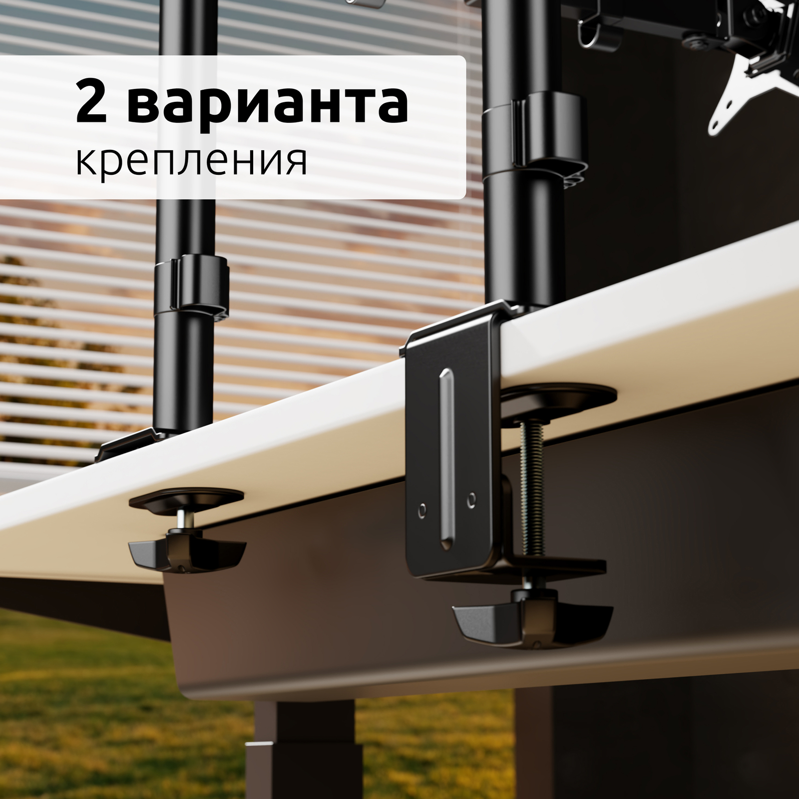 Кронштейн поставляется в оригинальной упаковке, с подробной инструкцией и широким набором креплений для настольной инсталляции (несколько вариантов закрепления на столешнице).