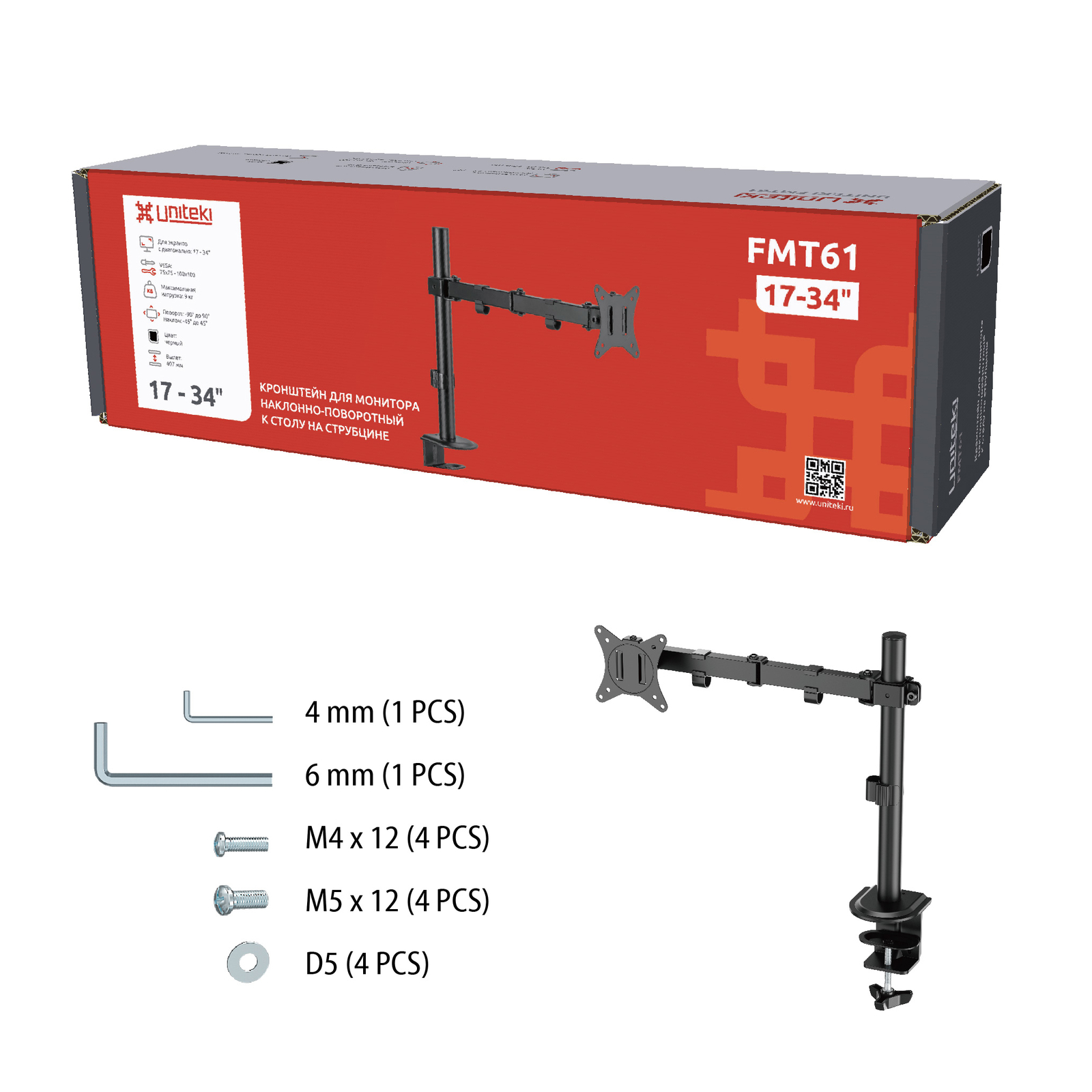 Кронштейн UNITEKI FMT61 подходит для всех мониторов, диагональю от 17 до 34 дюймов (см.: 43 ~ 86,36) и весом до 9 кг.