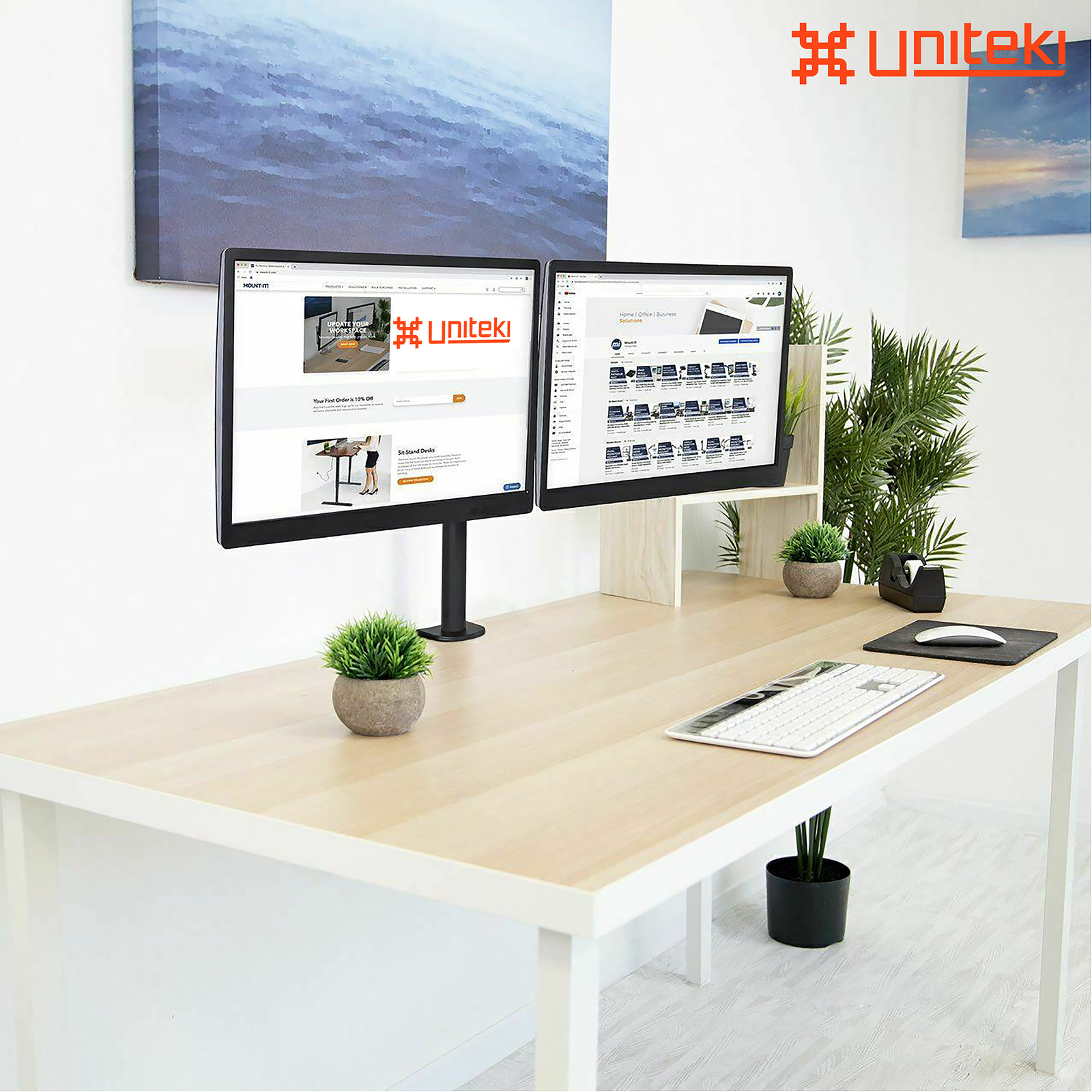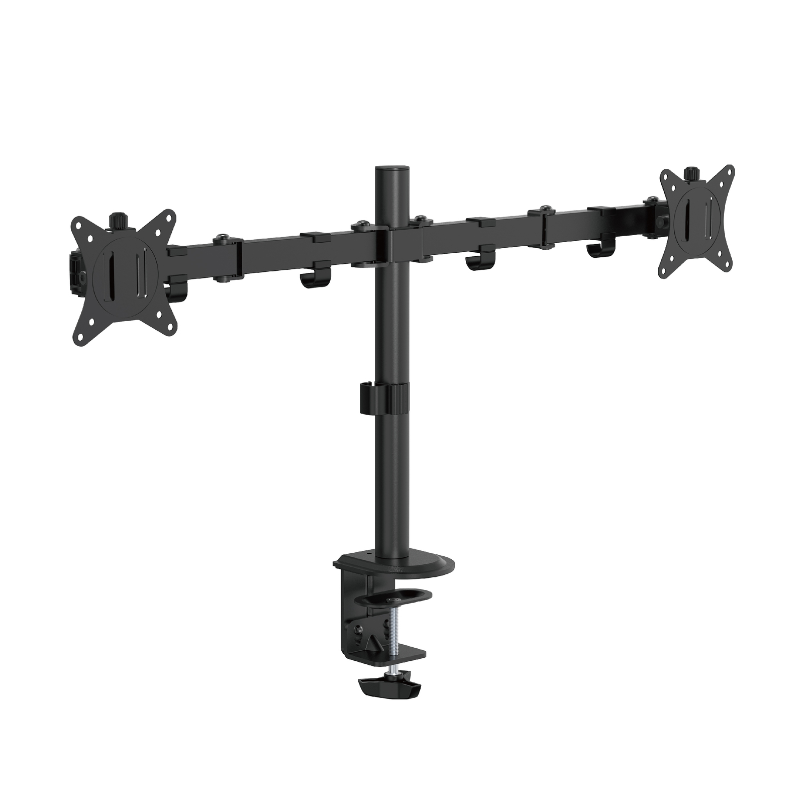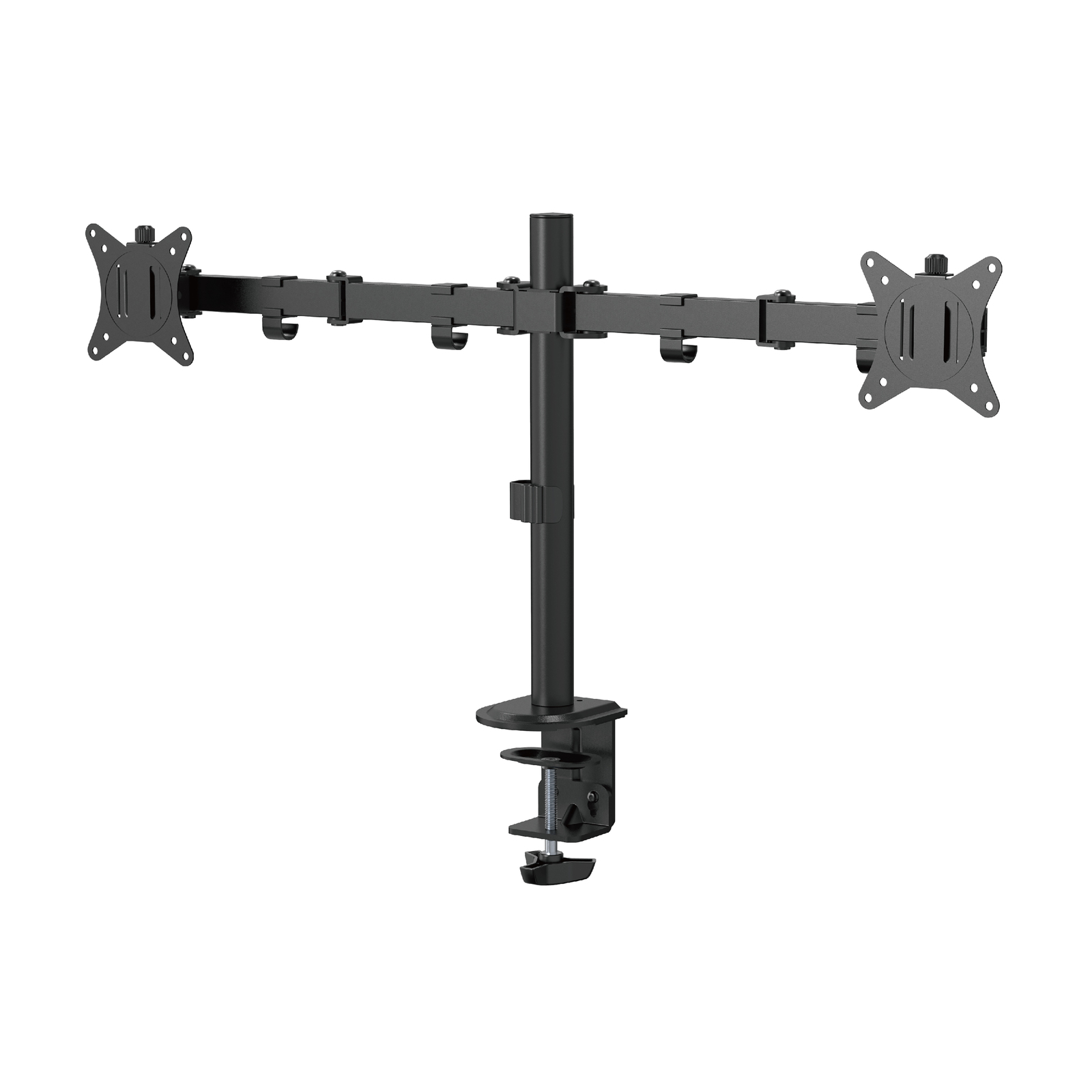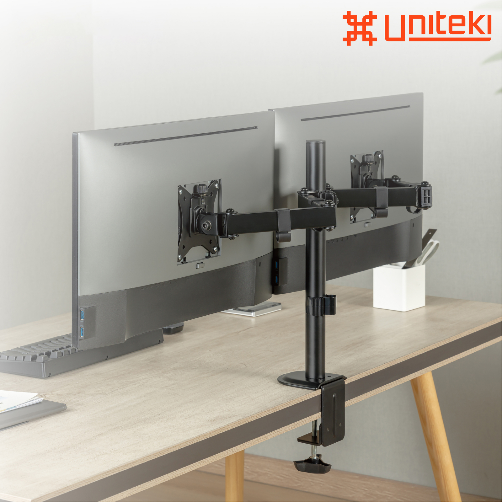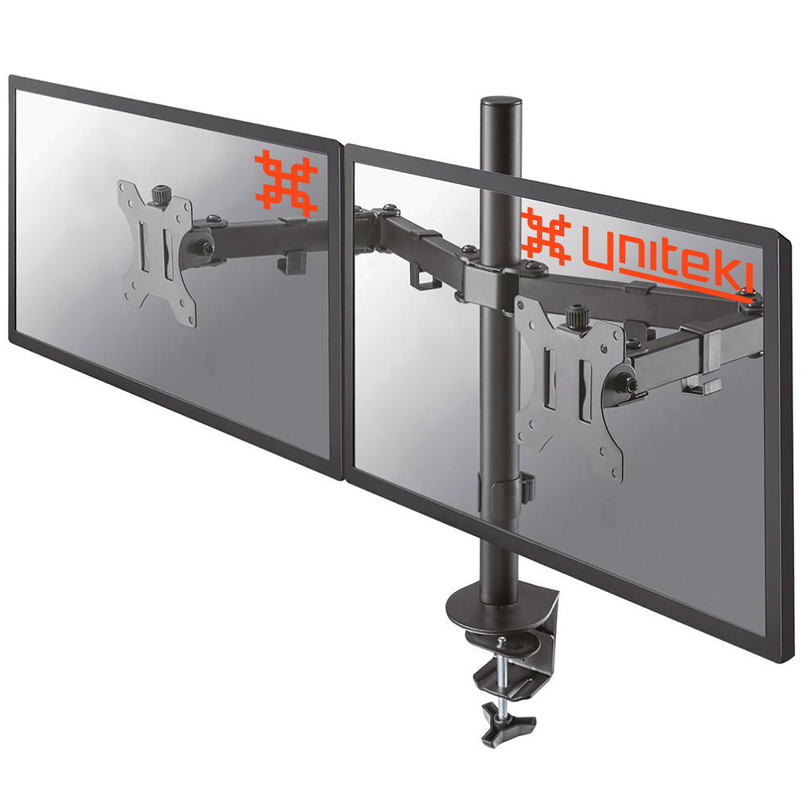 Для оптимальной организации пространства дома или в офисе предлагаем Вам настольный кронштейн-крепление для двух мониторов с горизонтальным расположением со струбциной UNITEKI FMT72 в черном цвете.