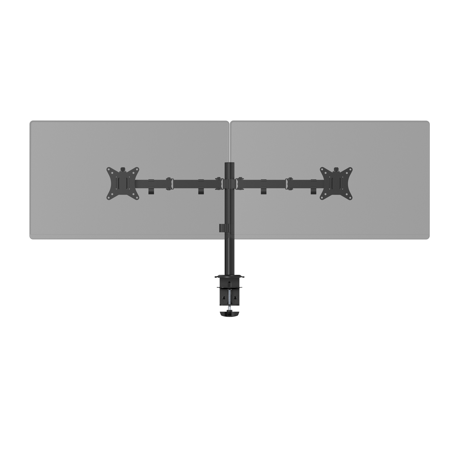 Крепление, кронштейн для двух мониторов, горизонтально на стол со струбциной, наклонно-поворотный, диагональ 17-32 дюйма