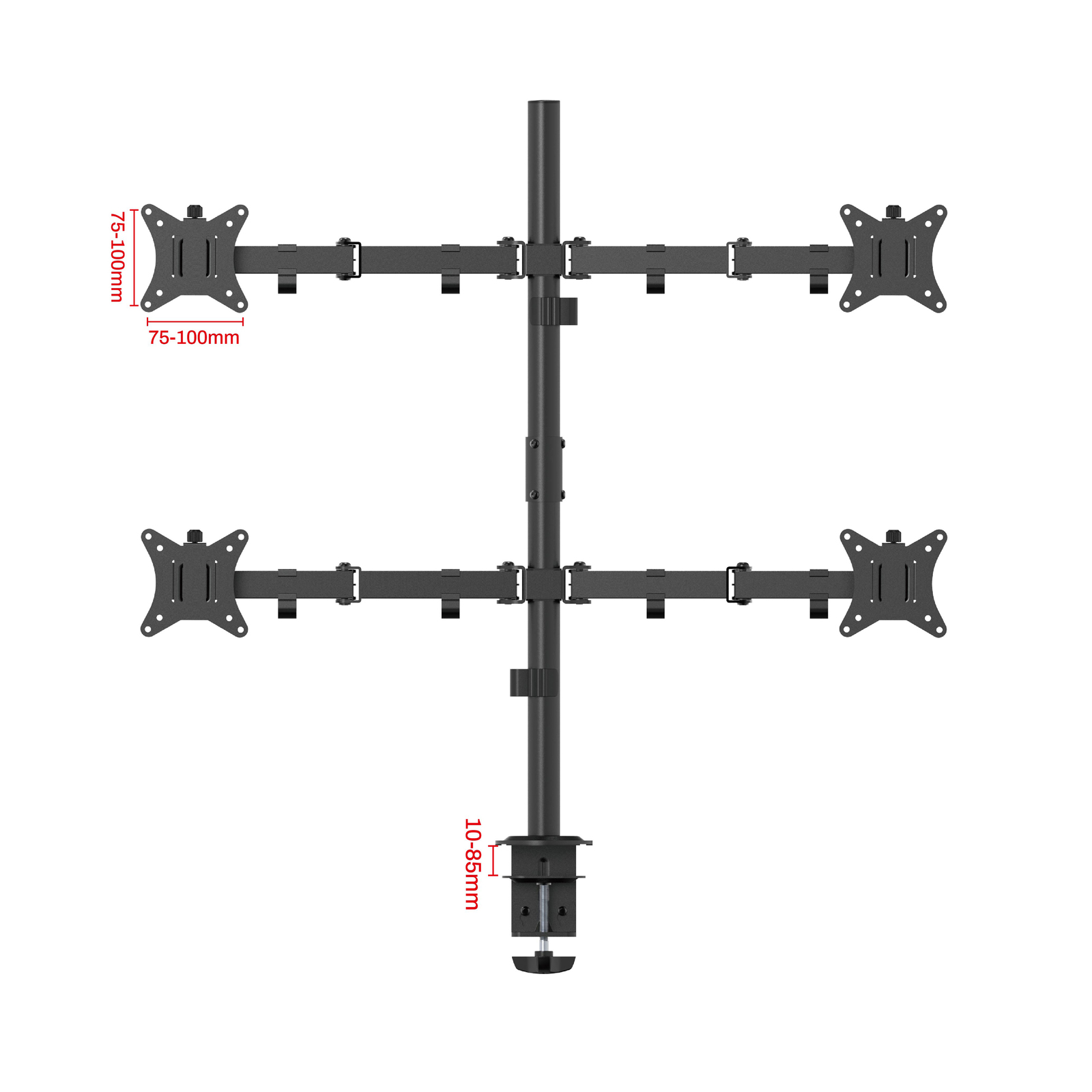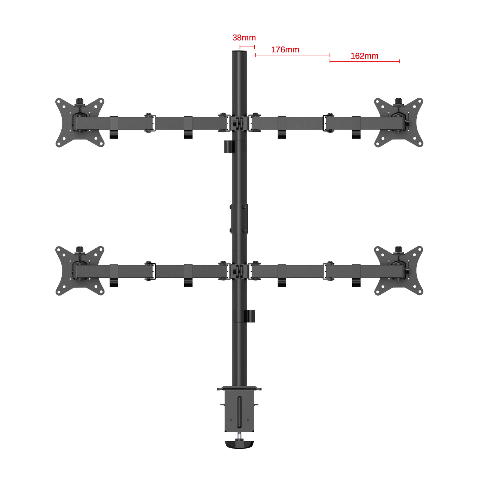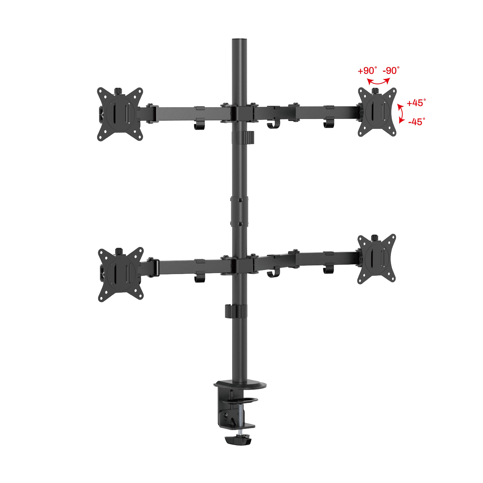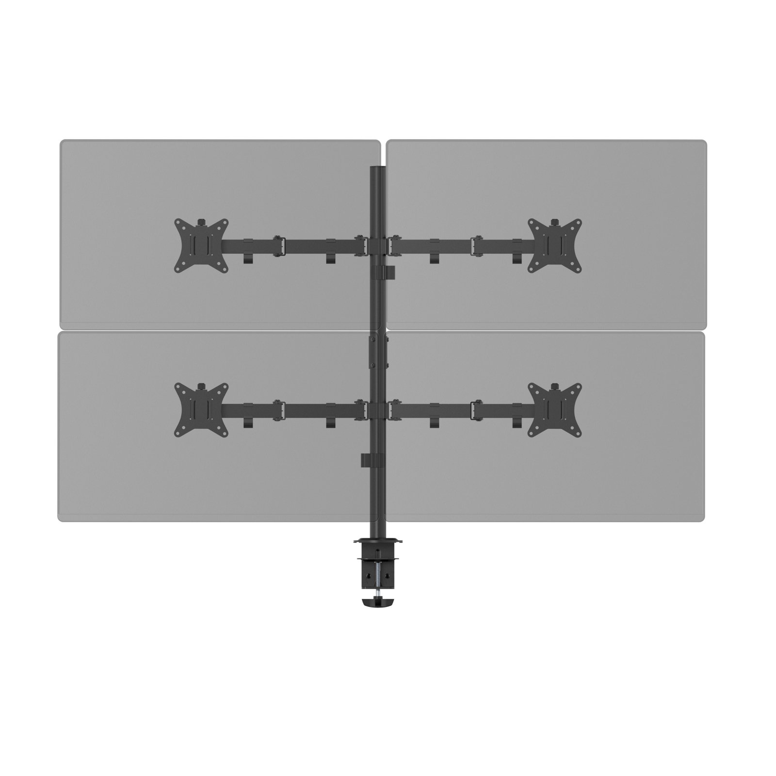 Крепление для четырех мониторов на стол со струбциной, диагональ 17-32 дюйма