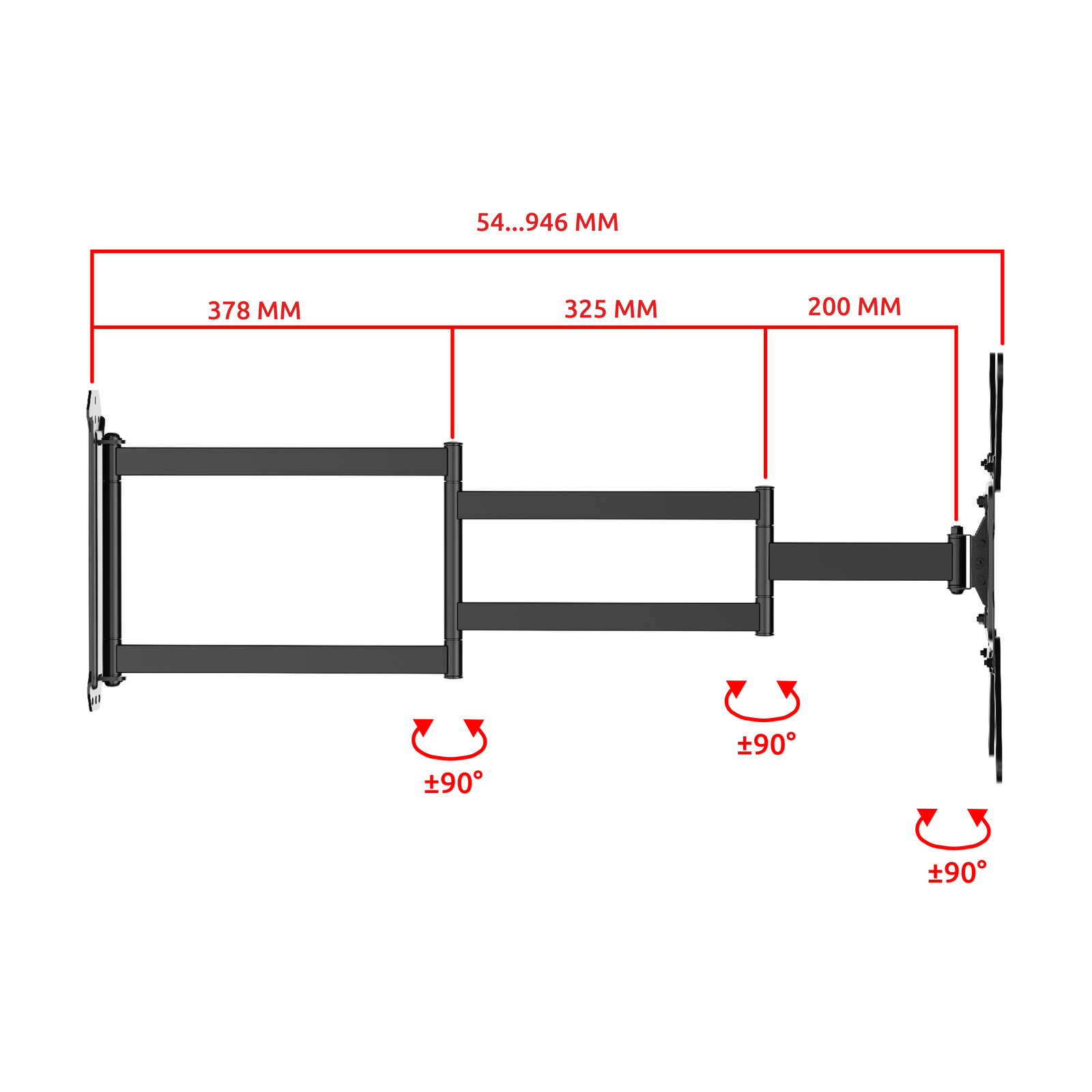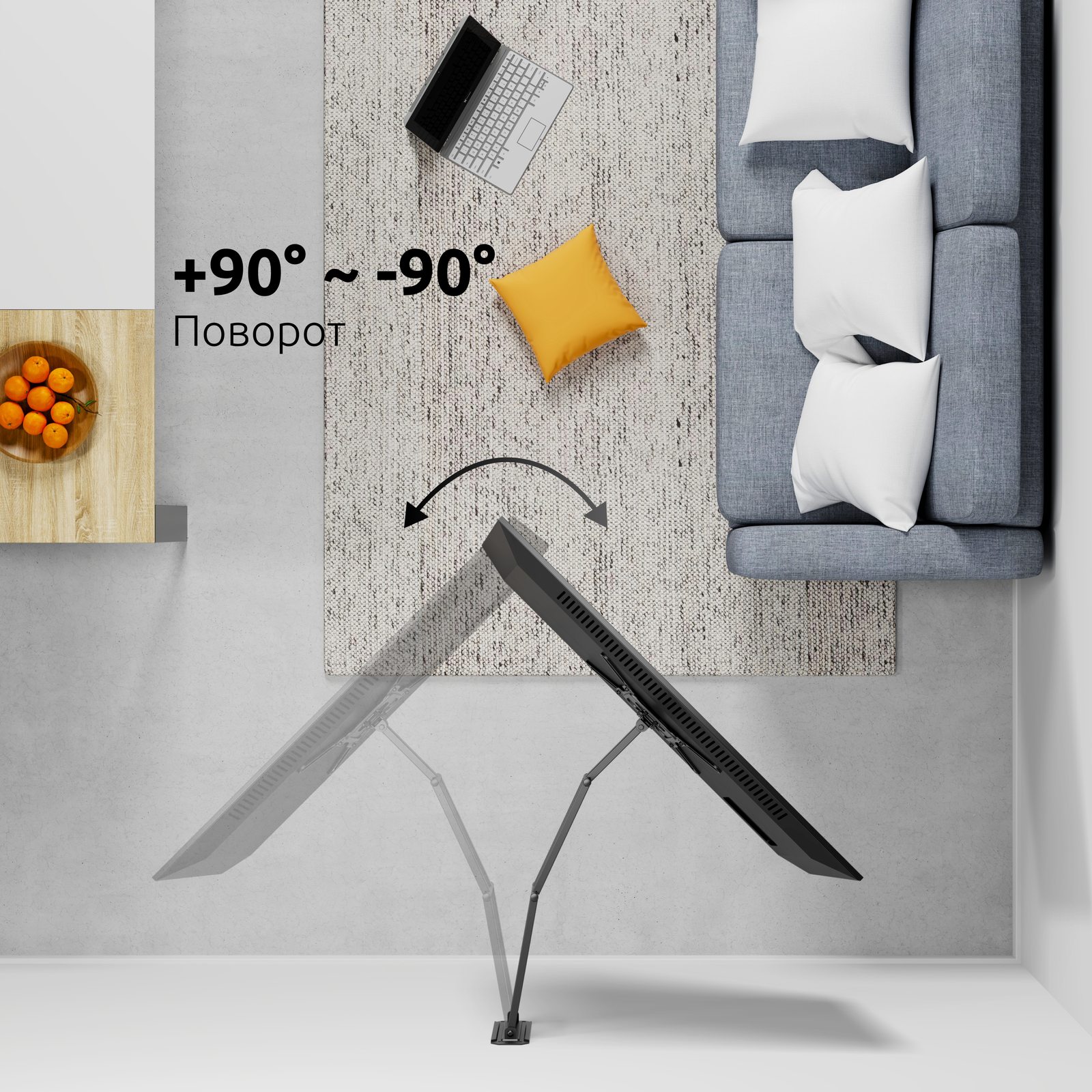 Вас порадуют компактность и аккуратный внешний вид кронштейна, а главным его преимуществом станет универсальность, максимально большой вылет 946 см. и поворот панели от стены 90°.