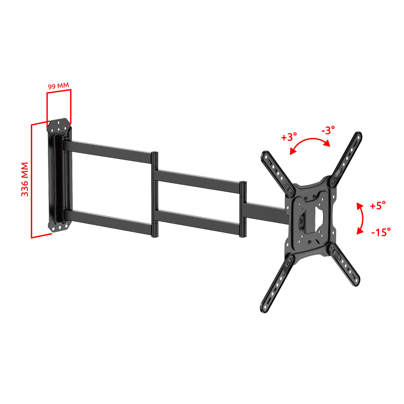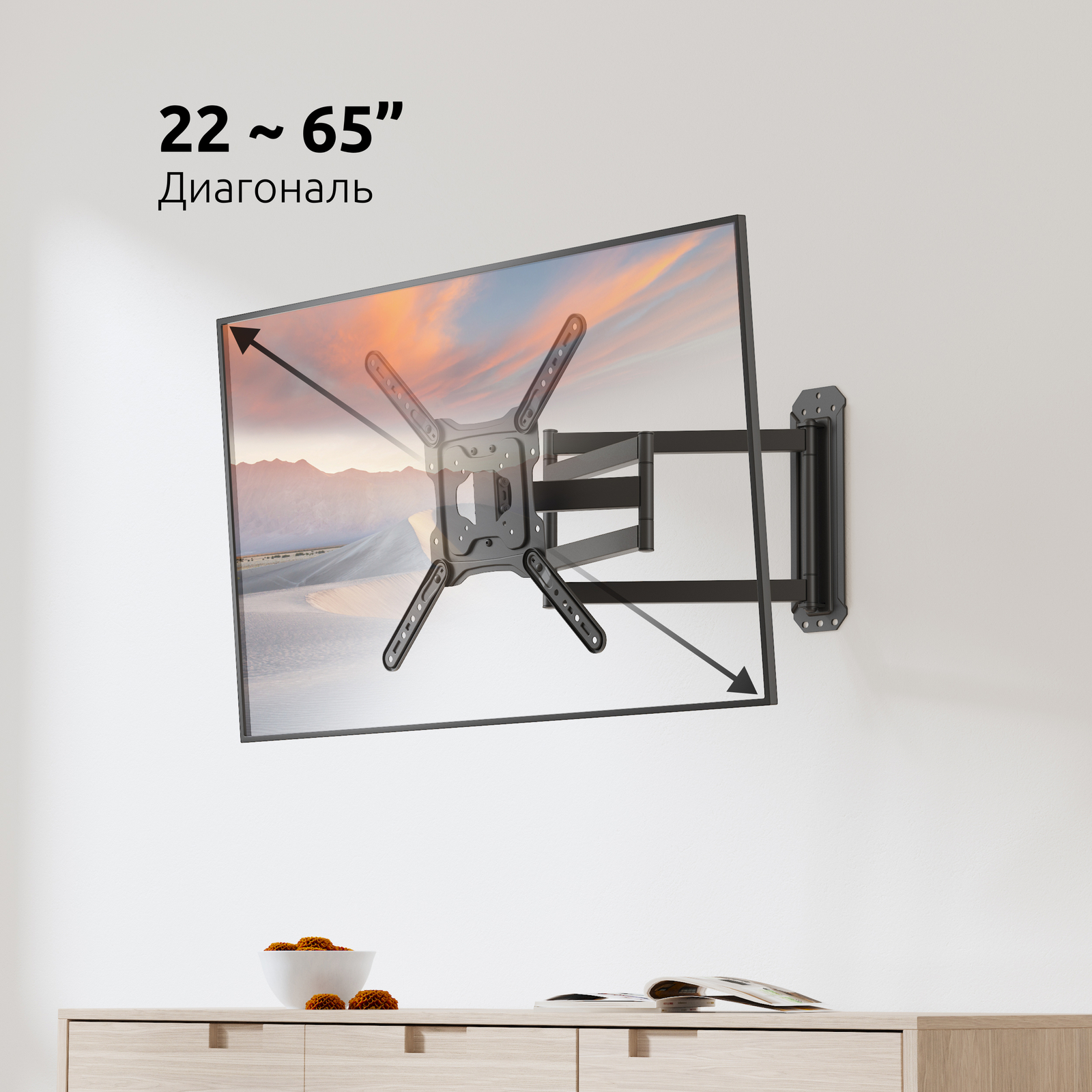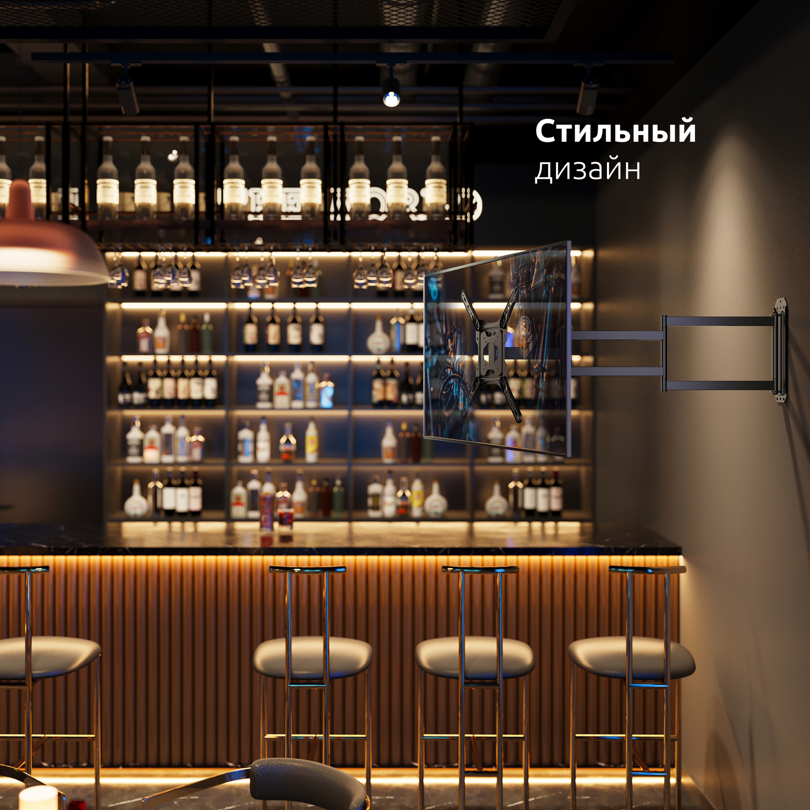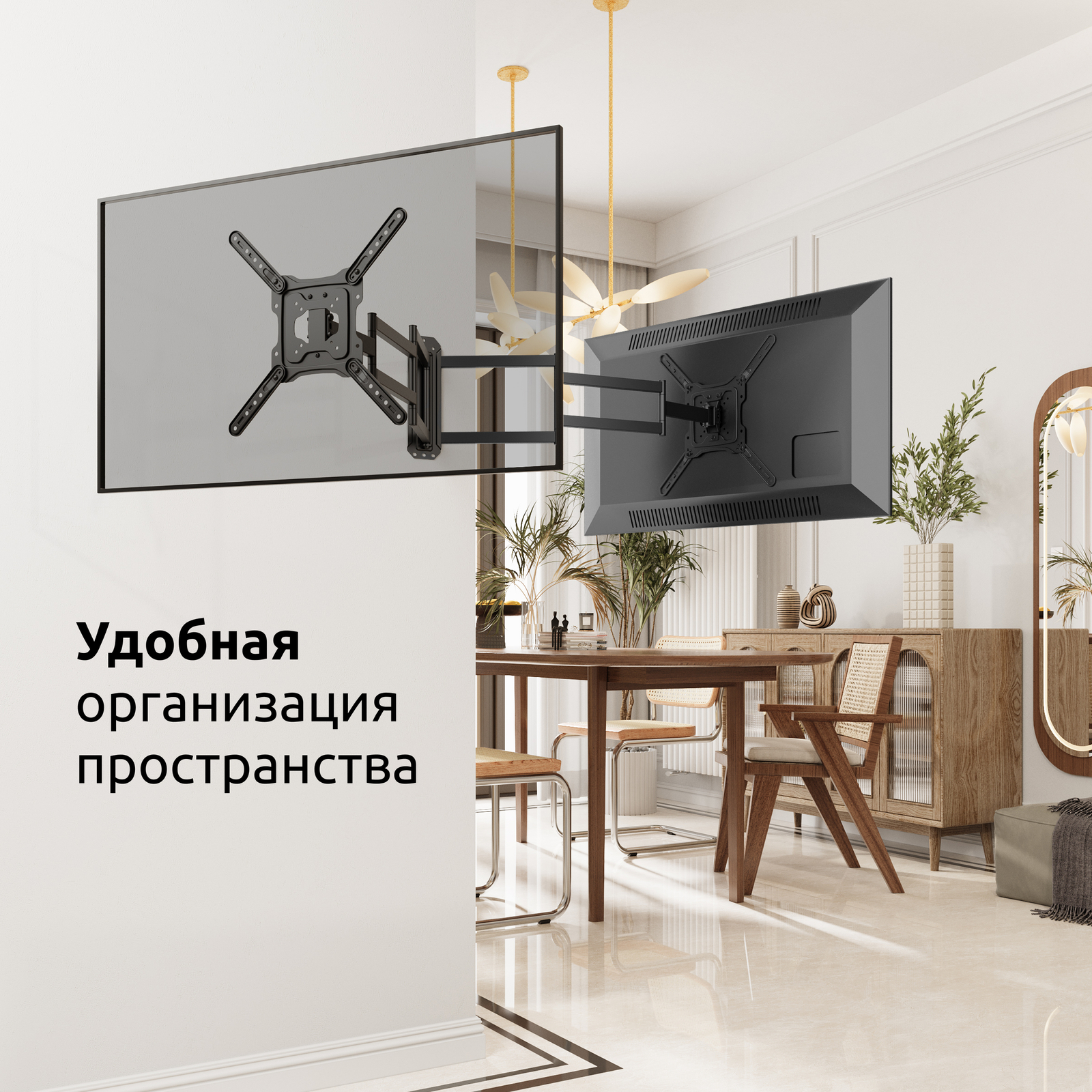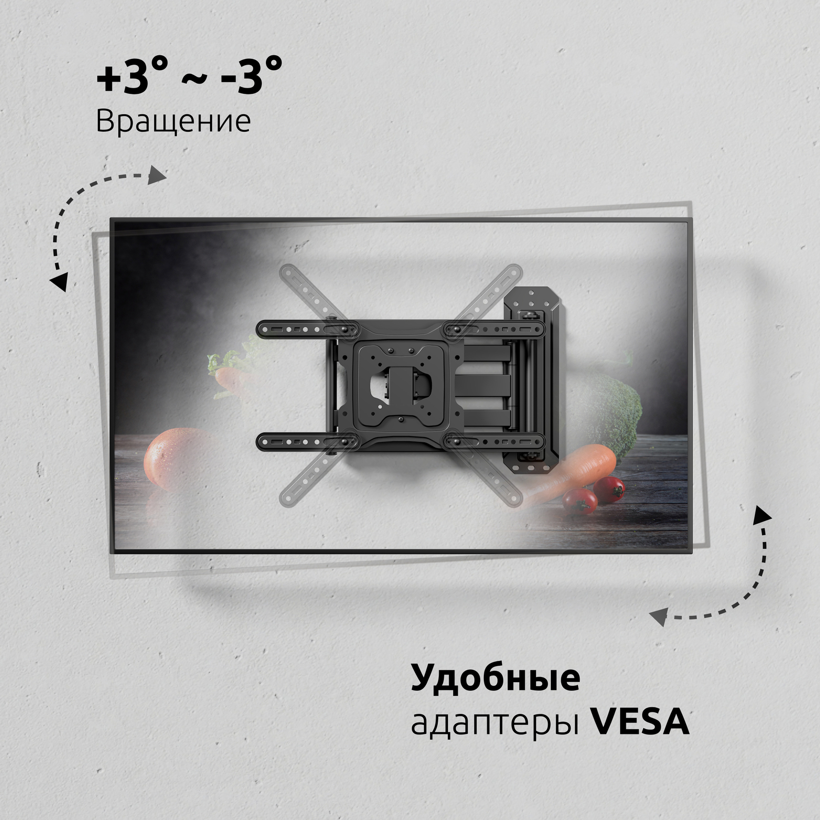 - Тип кронштейна: Настенный наклонно-поворотный с большим вылетом
