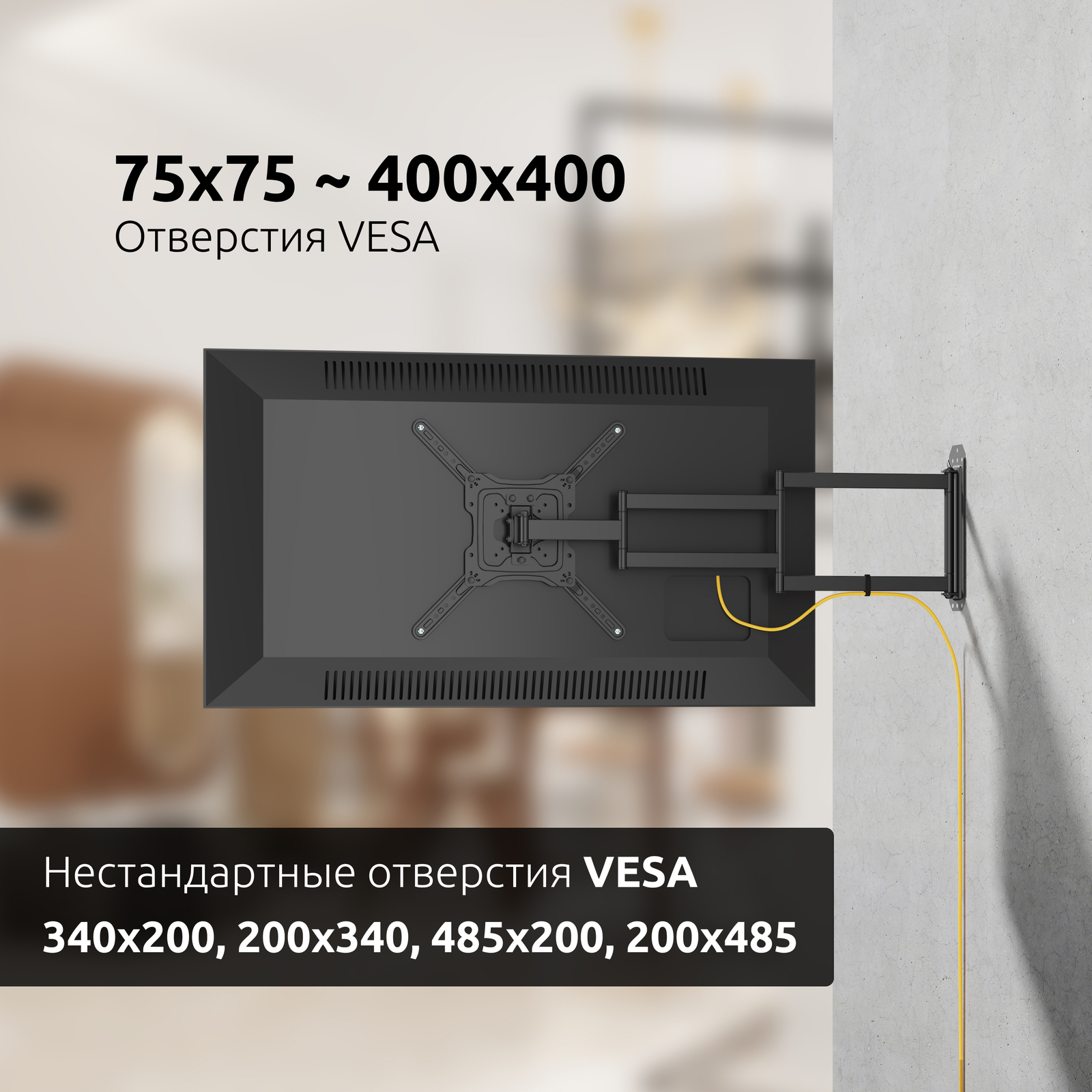 - Нестандартные отверстия VESA, (мм.): 340x200, 200x340, 485x200, 200x485