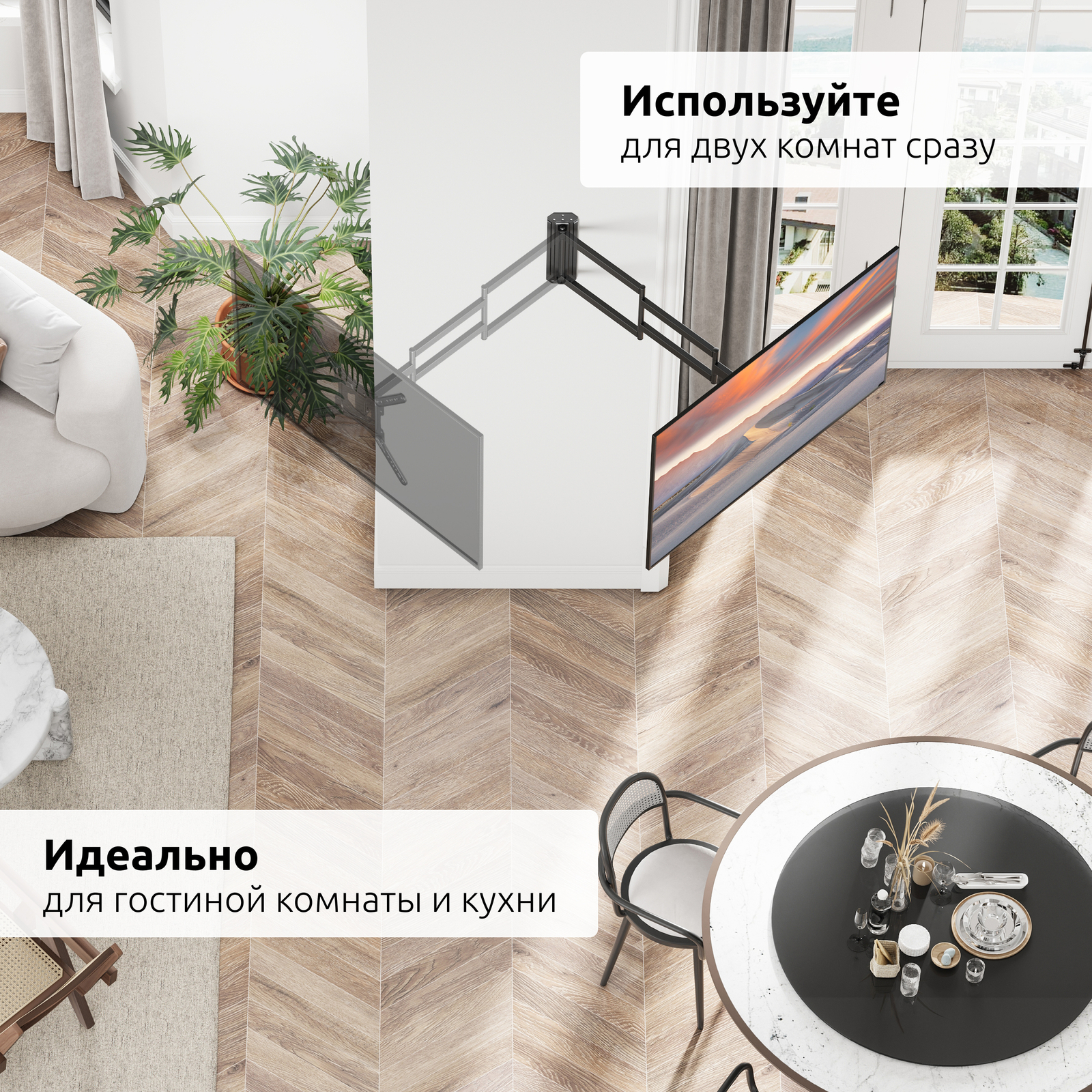Вы сможете повернуть панель и изменить расстояние от стены лёгким движением руки.