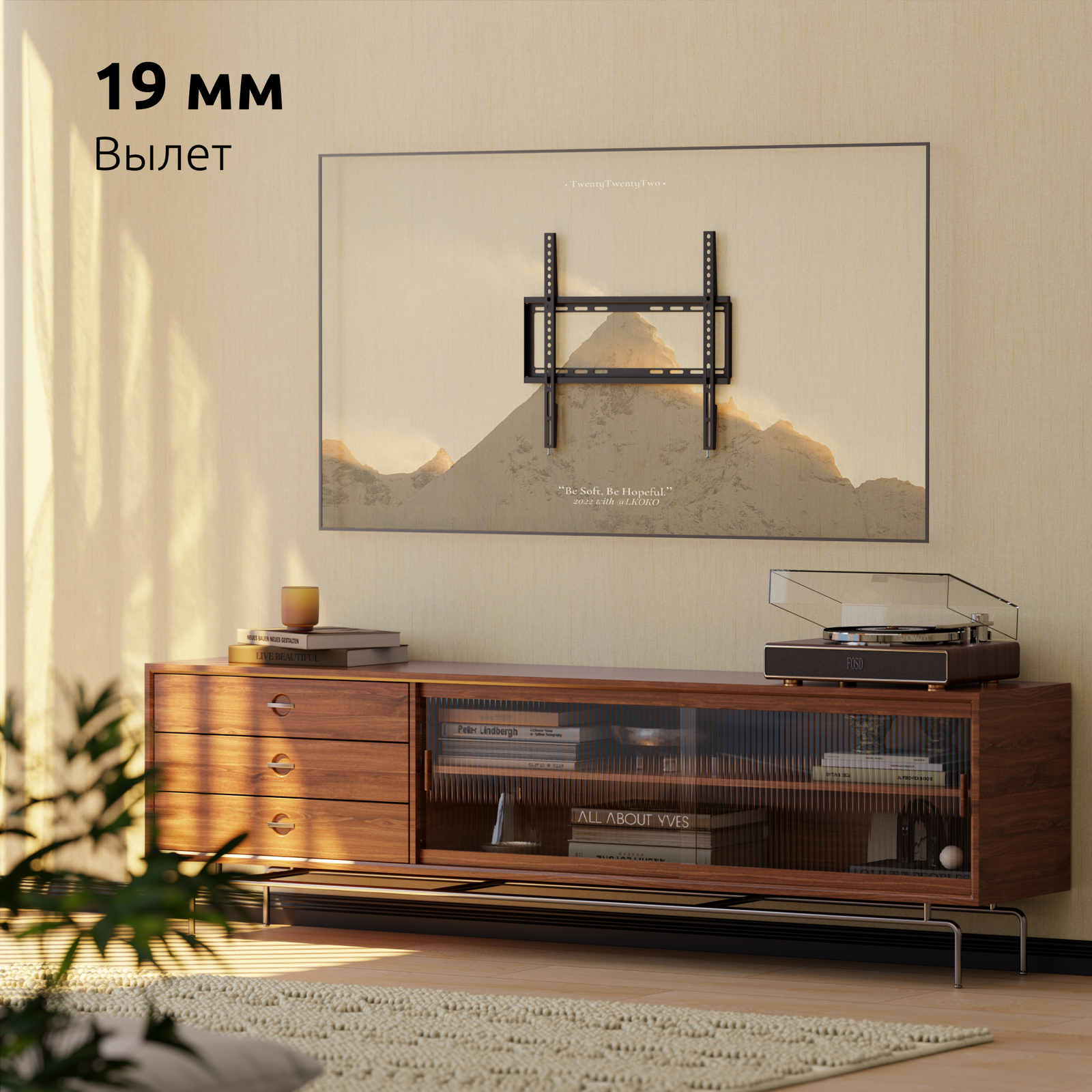 - Расстояние от стены составляет 19 мм., что придает кронштейну компактный и аккуратный внешний вид, делая его почти незаметным за Вашей ТВ-панелью.