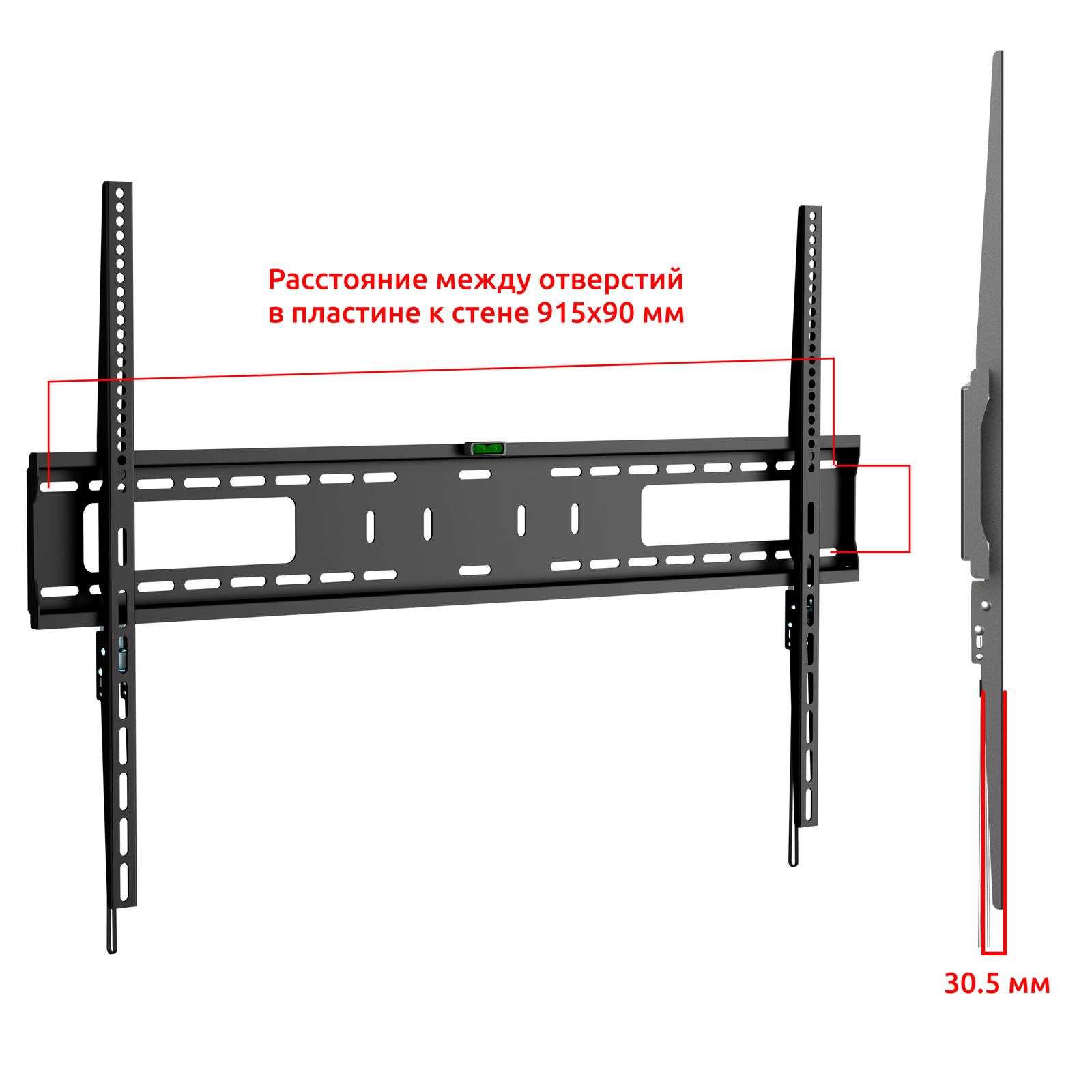 Расстояние от стены составляет 30.5 мм., что придает кронштейну компактный и аккуратный внешний вид, делая его почти незаметным за Вашей ТВ-панелью.