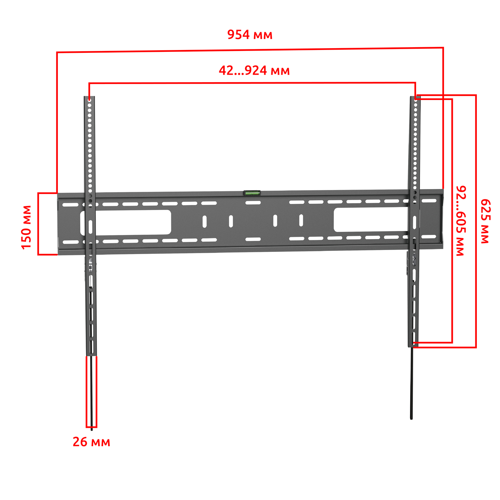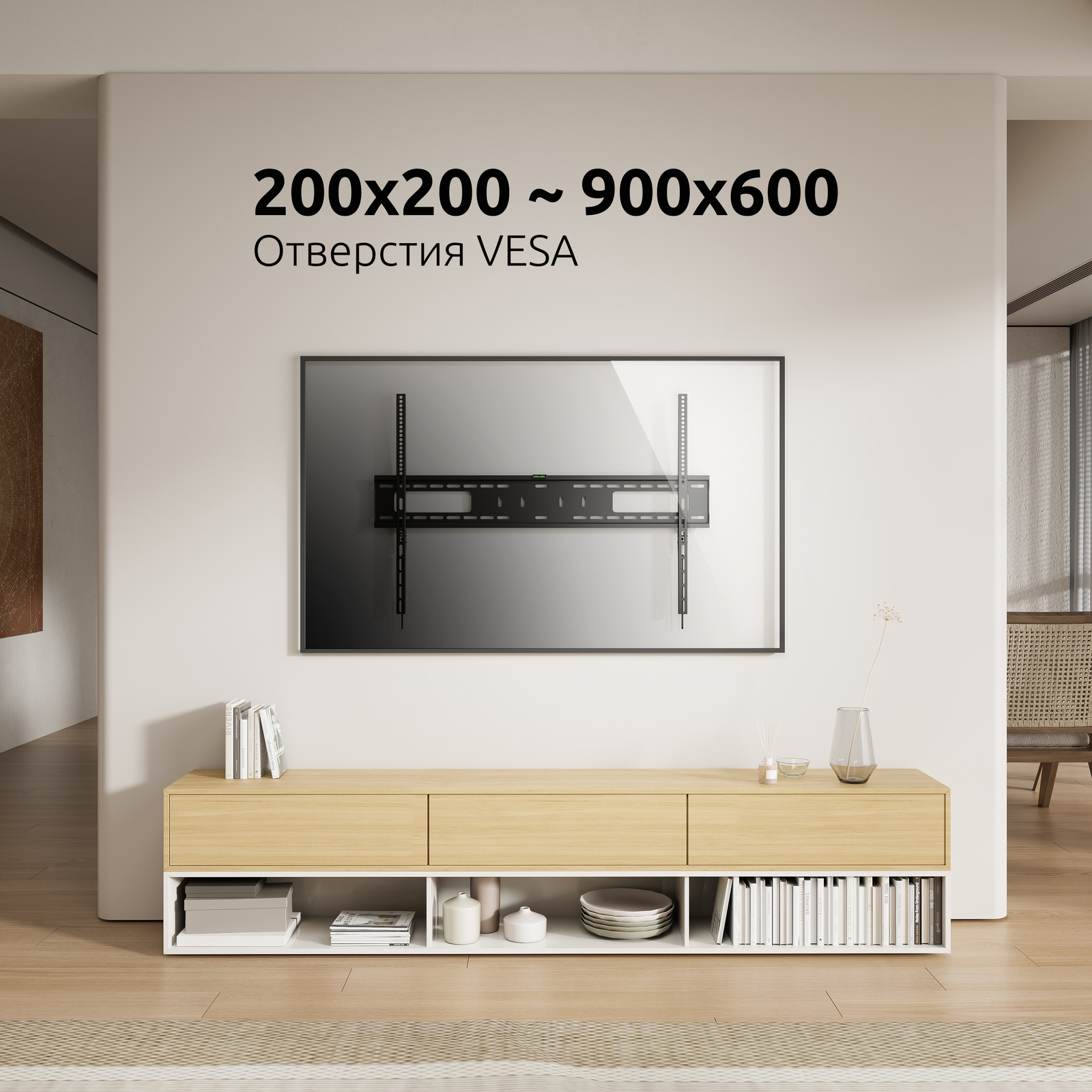 Кронштейн подходит для крепления панелей с множеством вариантов размеров VESA – от самых маленьких (200x200 мм.) до самых больших (900x600 мм.).