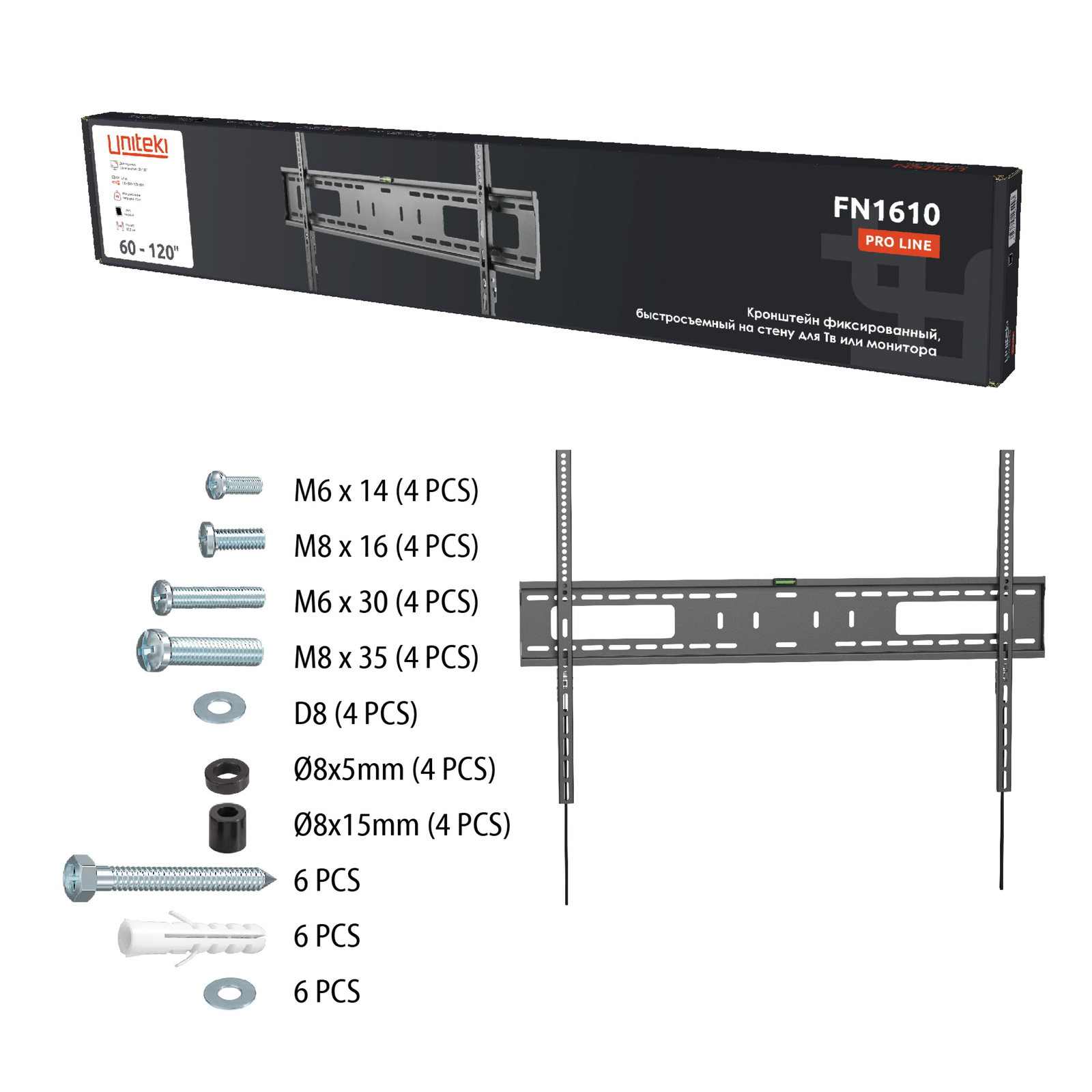 Настенный кронштейн серии Heavy Duty-сверх мощный UNITEKI FN1610 предназначен для телевизоров с диагональю от 60 до 120 дюймов (152 - 304.8 см).