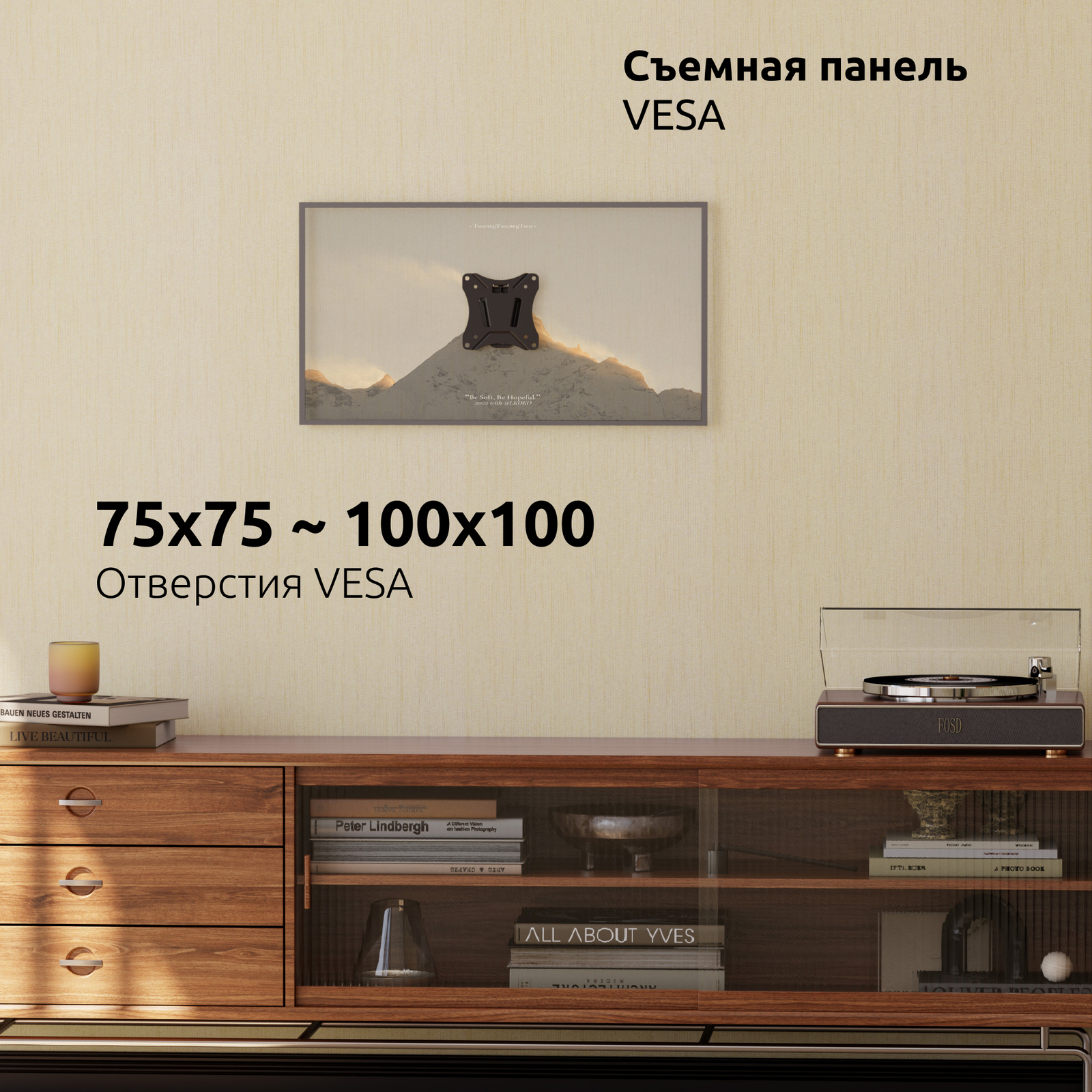 Крепление универсально за счет множества предусмотренных производителем размеров VESA от 75x75 мм до 100x100 мм.