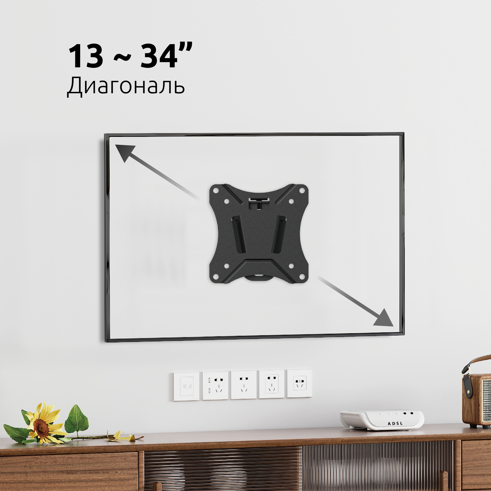 Настенный фиксированный кронштейн серии LOFT UNITEKI FN1901N предназначен для телевизоров и мониторов с диагональю от 13 до 34 дюймов (см. : 33 ~ 86,36).