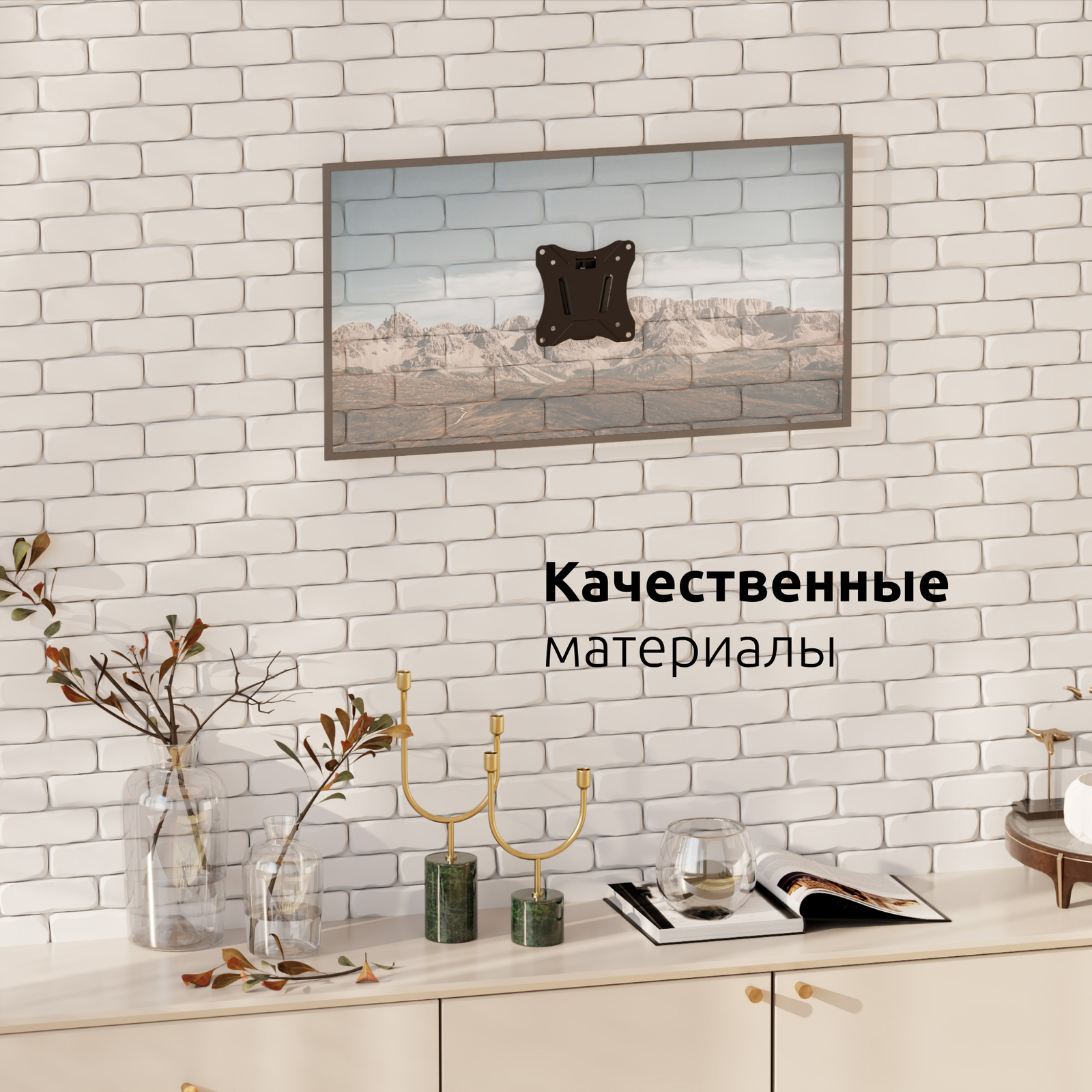 - Совместимость: Кронштейн подходит для большинства телевизоров и мониторов популярных брендов, среди которых Samsung, LG, Sony, KIVI, Tcl, Xiaomi Mi, SUPRA, Panasonic, Hyundai, Erisson, Asano, Horizont, JVC, Thomson, Sharp, Toshiba, Skyworth, BBK, AVEL, Витязь, Веко, BQ, DEXP, SkyLine, Pioneer, Rolsen, Harper, Hisense, Hitachi, Polarline, и других.