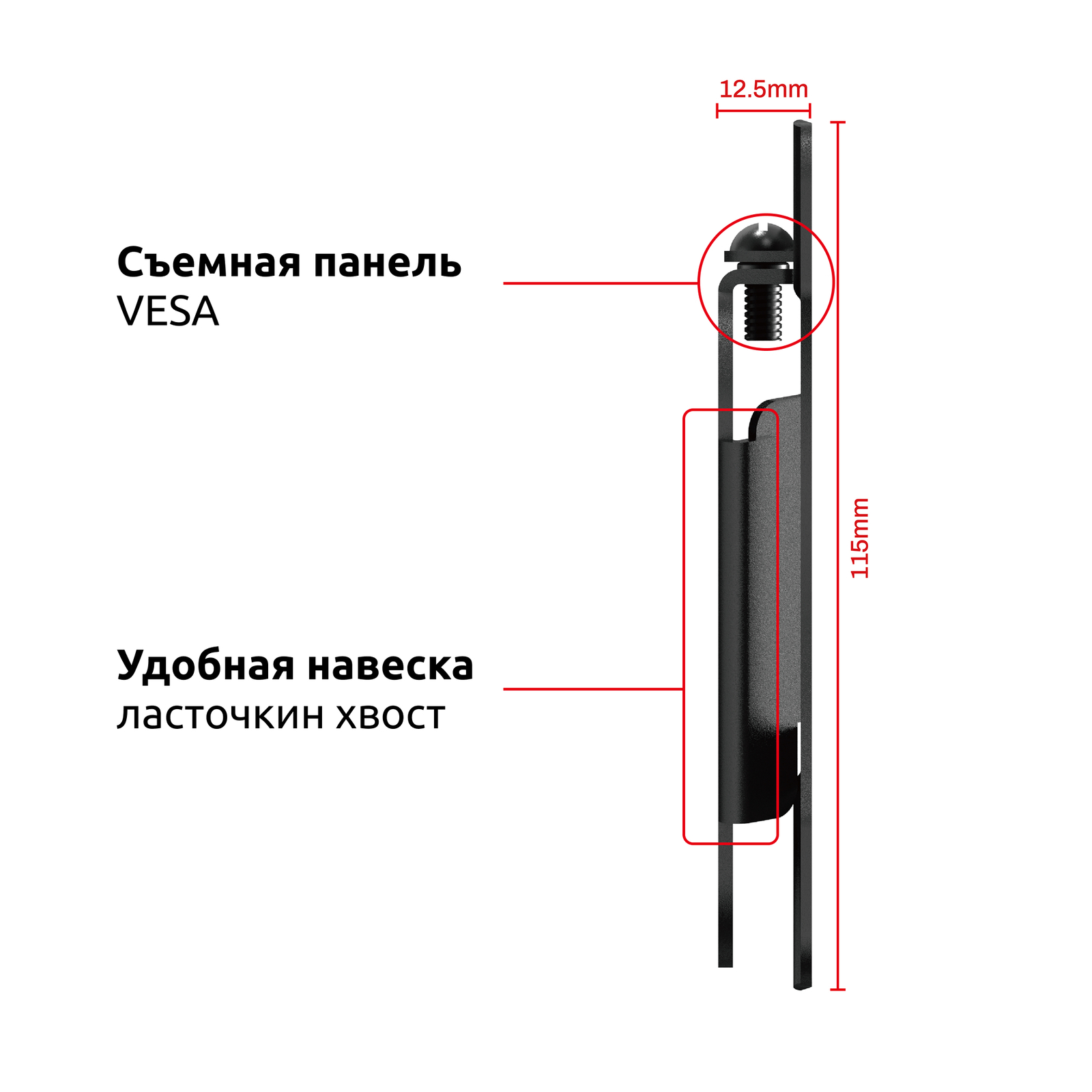 Расстояние от стены составляет 13 мм., что придает кронштейну компактный и аккуратный внешний вид, делая его почти незаметным за Вашей ТВ-панелью.