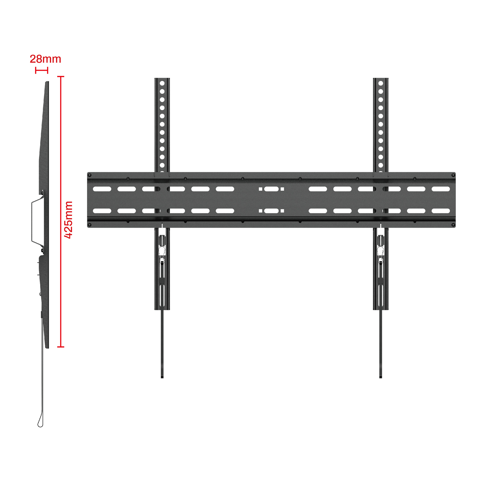 Расстояние от стены составляет 28,0 мм., что придает кронштейну компактный и аккуратный внешний вид, делая его почти незаметным за Вашей ТВ-панелью.