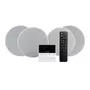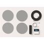 Комплект звукового оборудования (все в одном), который включает 4 потолочных динамика и настенный усилитель.
