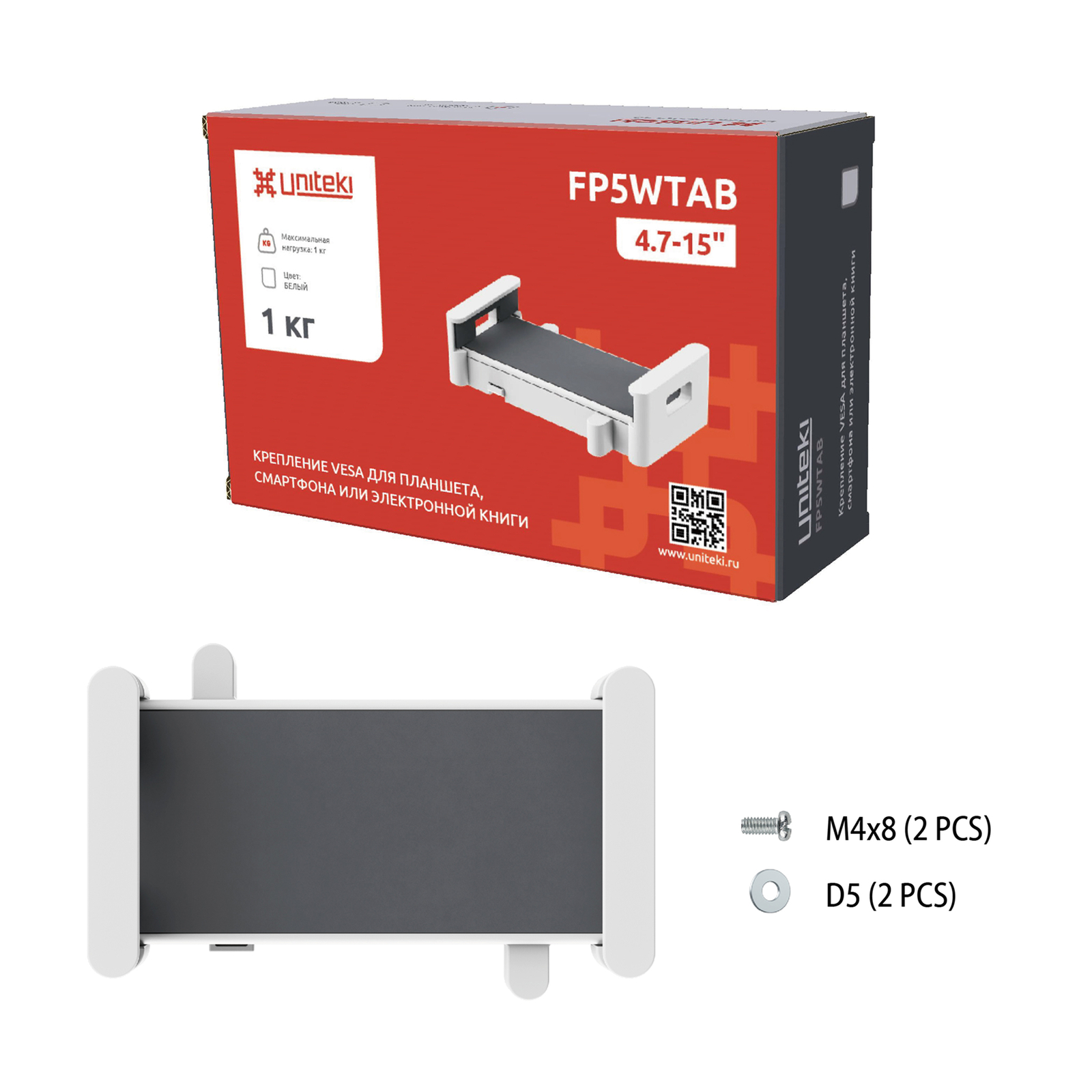 Представляем Вам, универсальное крепление для электронной книги, смартфона или планшета UNITEKI FP5WTAB представленное в белом цвете, которое устанавливается как дополнительный аксессуар на настольные, настенные, наклонно поворотные кронштейны UNITEKI, в том числе и кронштейны системы газ лифт.