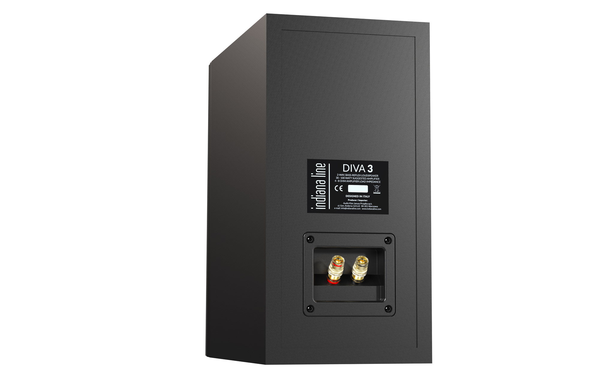 Полочная модель Diva 3 является представителем новой серии Diva Indiana Line. Эти акустические системы имеют антирезонансный корпус и характеризуются элегантной отделкой. Передняя панель окрашена в матовый лак (в зависимости от версии - белый или черный), в то время как остальная часть корпуса покрыта ПВХ-ламинатом (в зависимости от версии - черный или дуб).