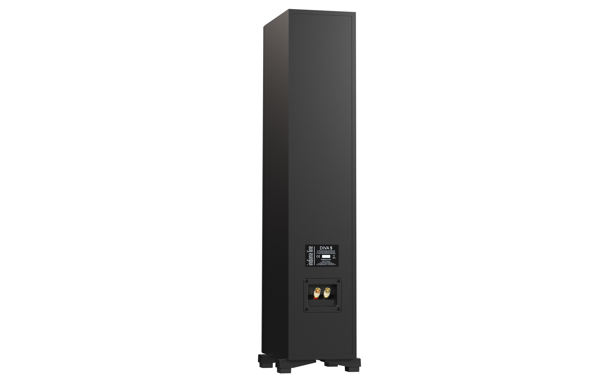 Дизайн колонок Diva 5 с немного наклонной фронтальной панелью подтверждает мастерство дизайнеров Indiana Line. Внимание привлекает стильный двухслойный корпус из МДФ, который включает отдельную матово-лакированную фронтальную панель толщиной до 30 мм, а остальная часть корпуса покрыта ПВХ-ламинатом. Колонки поддерживаются прочными алюминиевыми ножками, которые стабилизируют всю конструкцию. Современный характер колонок дополнительно подчеркивается магнитно прикрепляемыми решетками