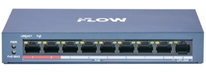 F-SW-EU209POE-V/L iFlow L2, неуправляемый, 8 портов 10/100M RJ45 PoE, 1 uplink порт 10/100M RJ45, 802.3af/at, бюджет PoE 60 Вт, поддержка режима передачи до 300м,10Мб/с, CAT6; защита от перенапряжения 6 кВ