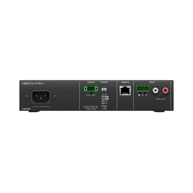 LAB.GRUPPEN CA2401 - одноканальный трансляционный усилитель мощности на 240 Вт представляет собой идеальное решение для коммерческих инсталляций, требующих отличного звучания распределенного звука в сочетании с энергосбережением и снижением эксплуатационных расходов. Способен воспроизводить высококачественный звук через конфигурации громкоговорителей Low-Z (4/8 Ом) и High-Z (70/100 В), предлагая исключительную гибкость. CA2401 прост в установке и эксплуатации даже для нетехнического персонала. Проще говоря, CA2402 идеально подходит для баров и ресторанов, магазинов, гостиниц, корпоративных, образовательных и других мест, где требуется фоновая музыка и/или система громкой связи.