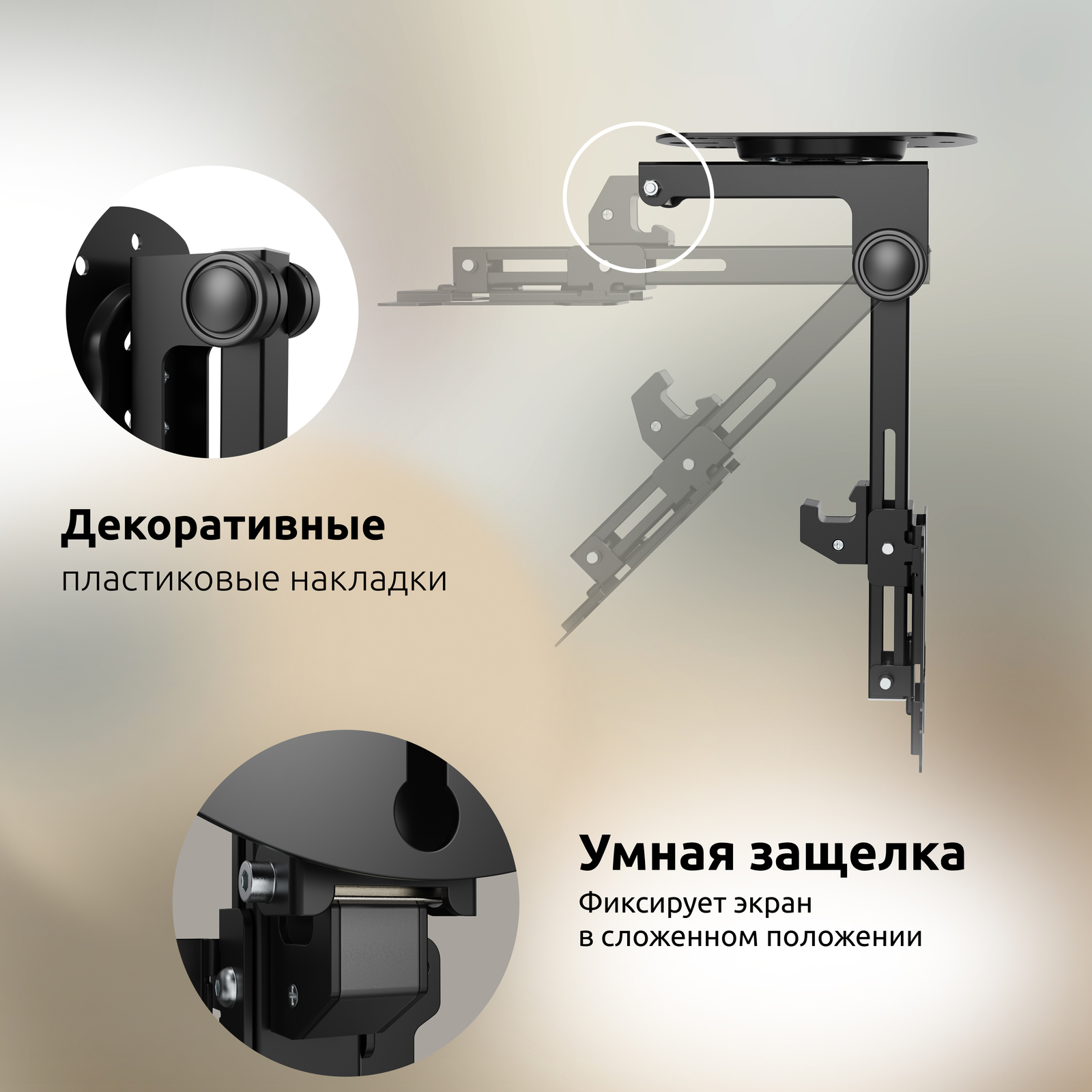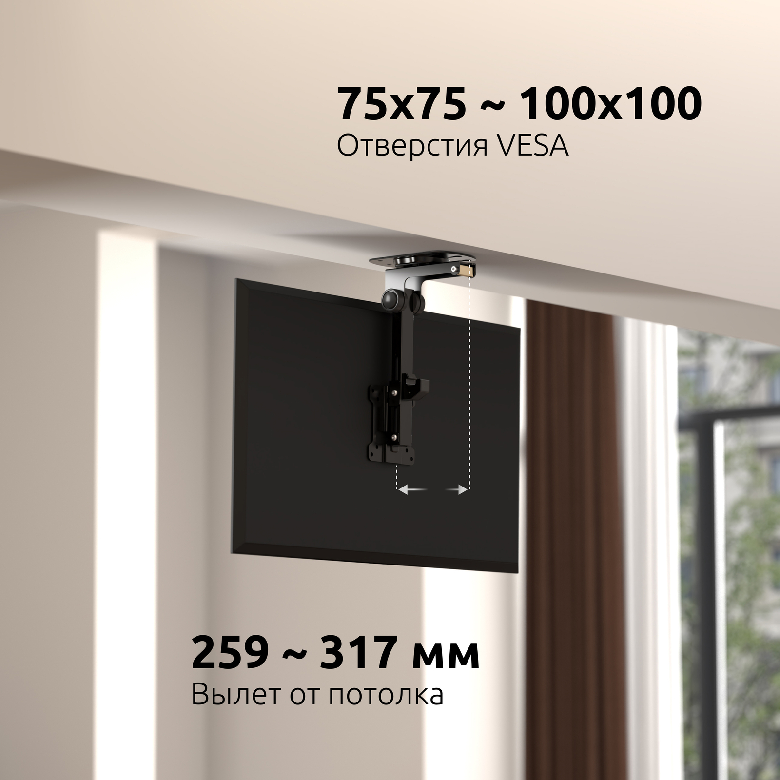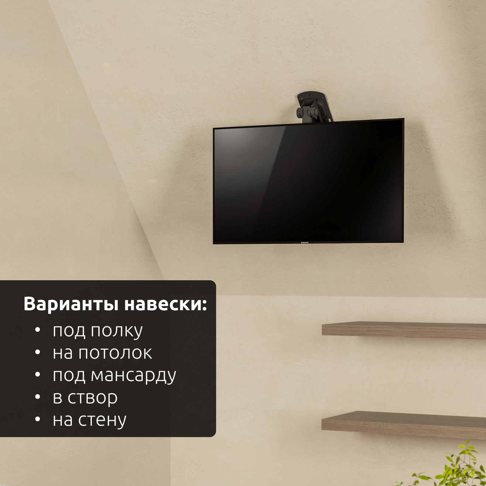 - Тип кронштейна: Складывающийся, потолочный, подполочный кронштейн для ТВ или монитора с возможностью навески под мансарду