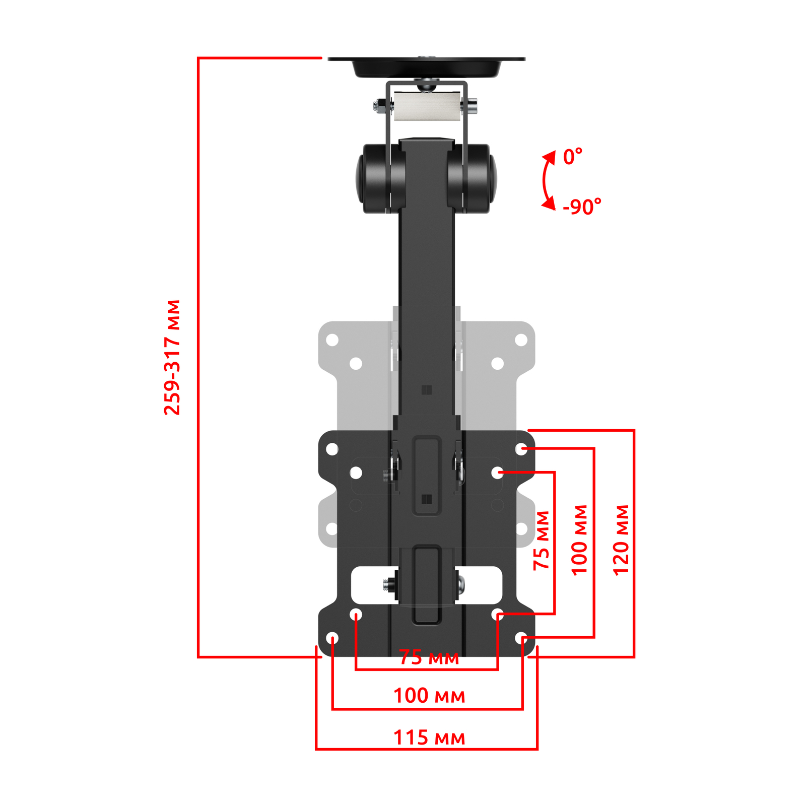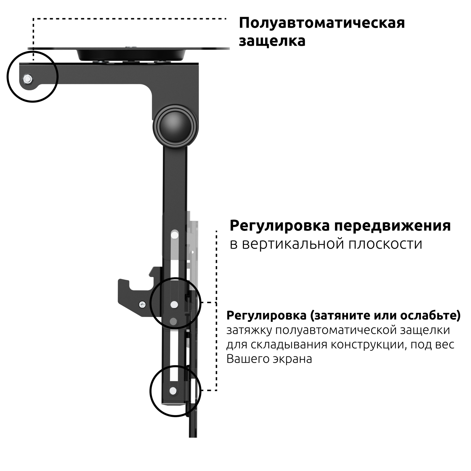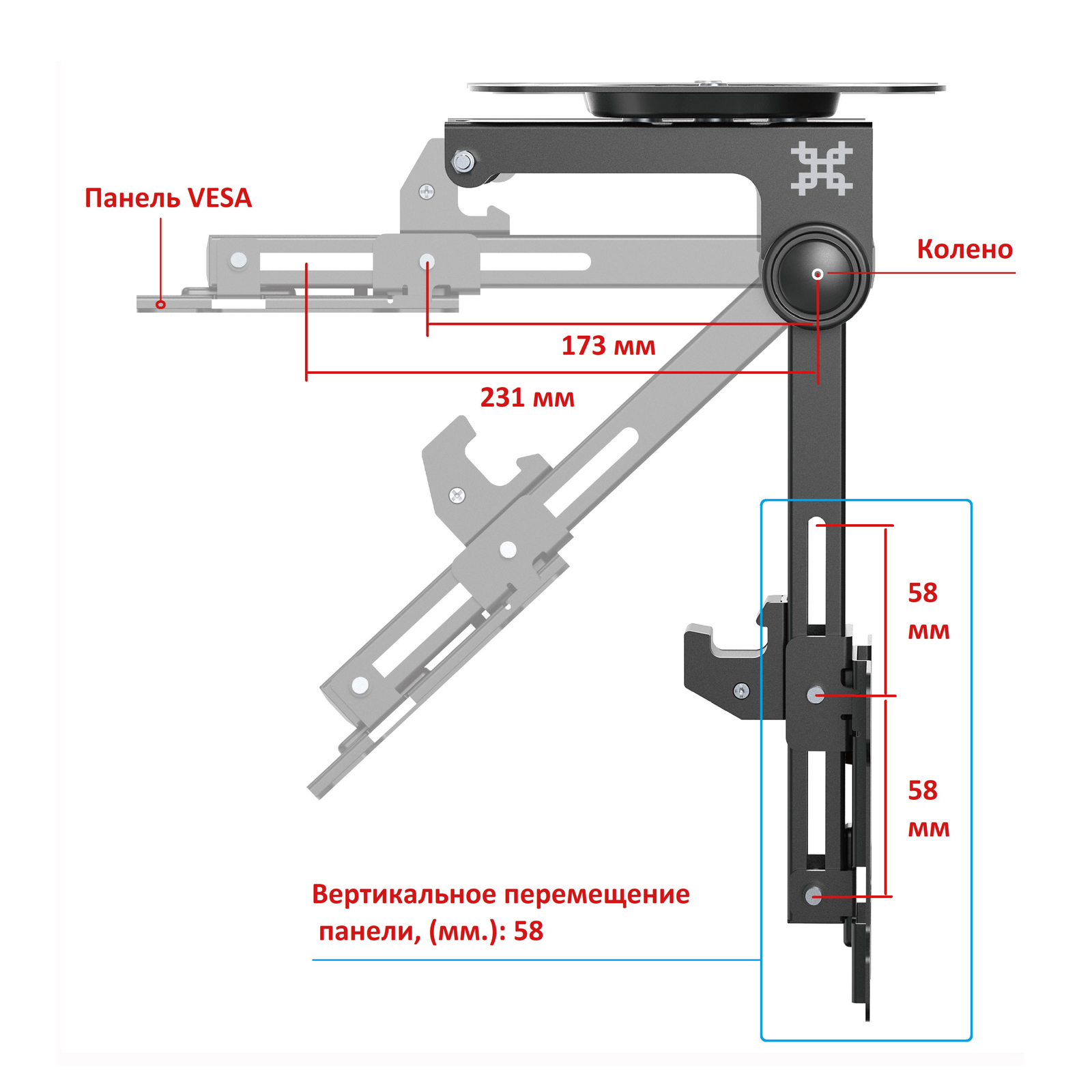 - Тип кронштейна: Складывающийся, потолочный, подполочный кронштейн для ТВ или монитора с возможностью навески под мансарду
