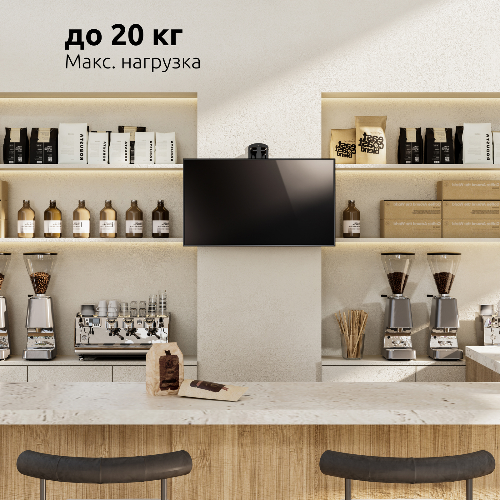 Крепкий и прочный, при этом элегантный кронштейн станет прекрасным дополнением любого интерьера, не в зависимости от того, где Вы разместите кронштейн: на кухне или офисе под полкой, на потолок в любом помещении, под мансардой и т.д..