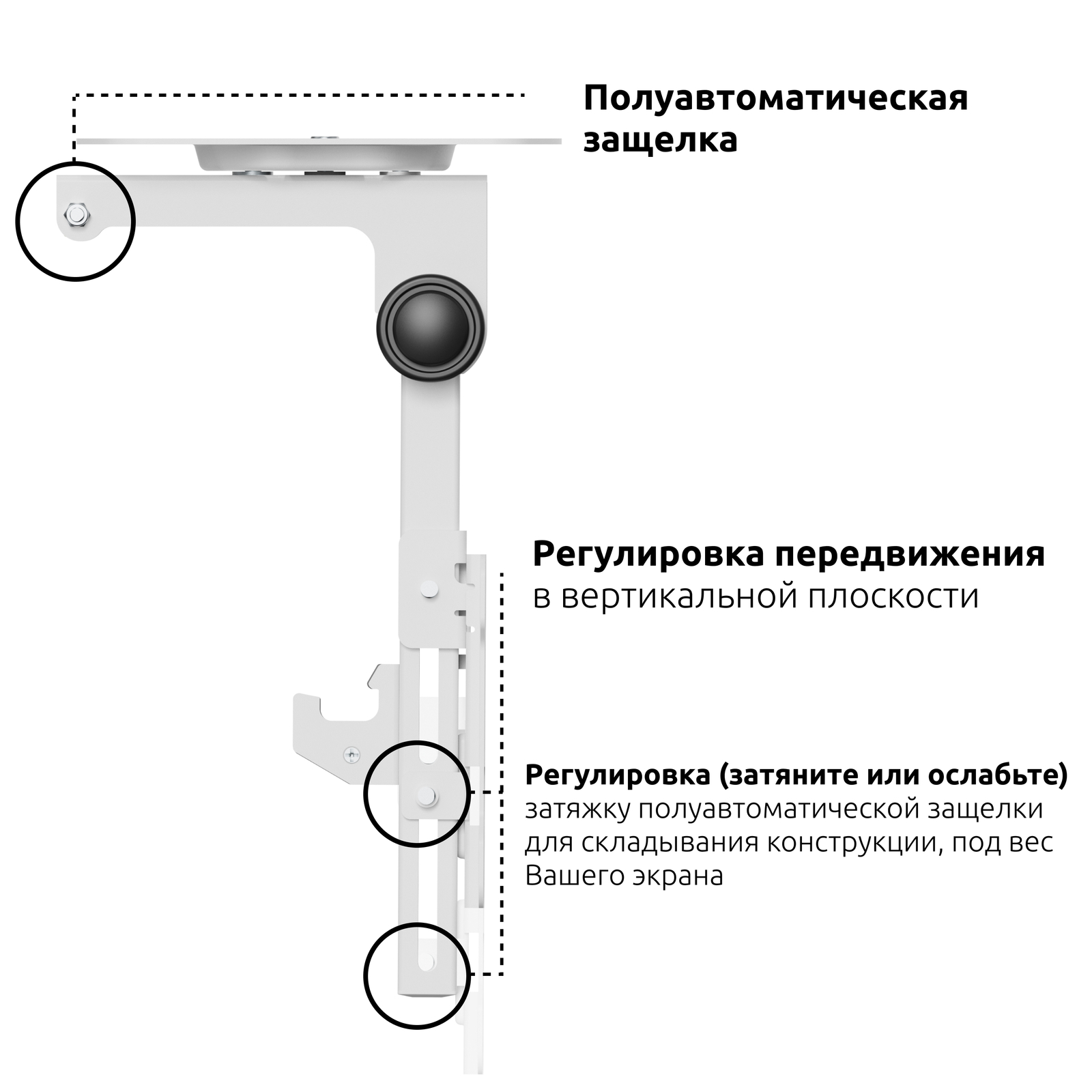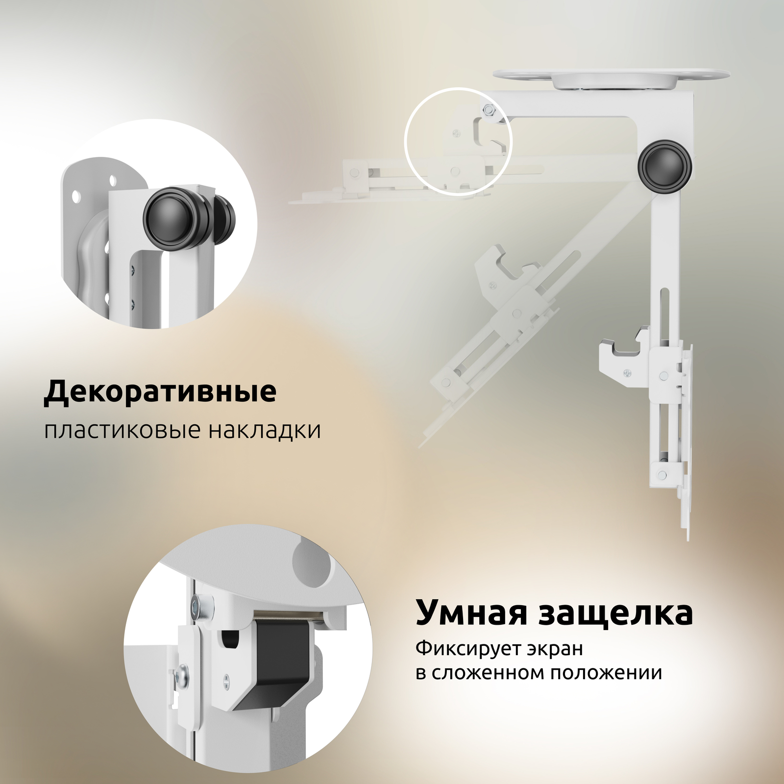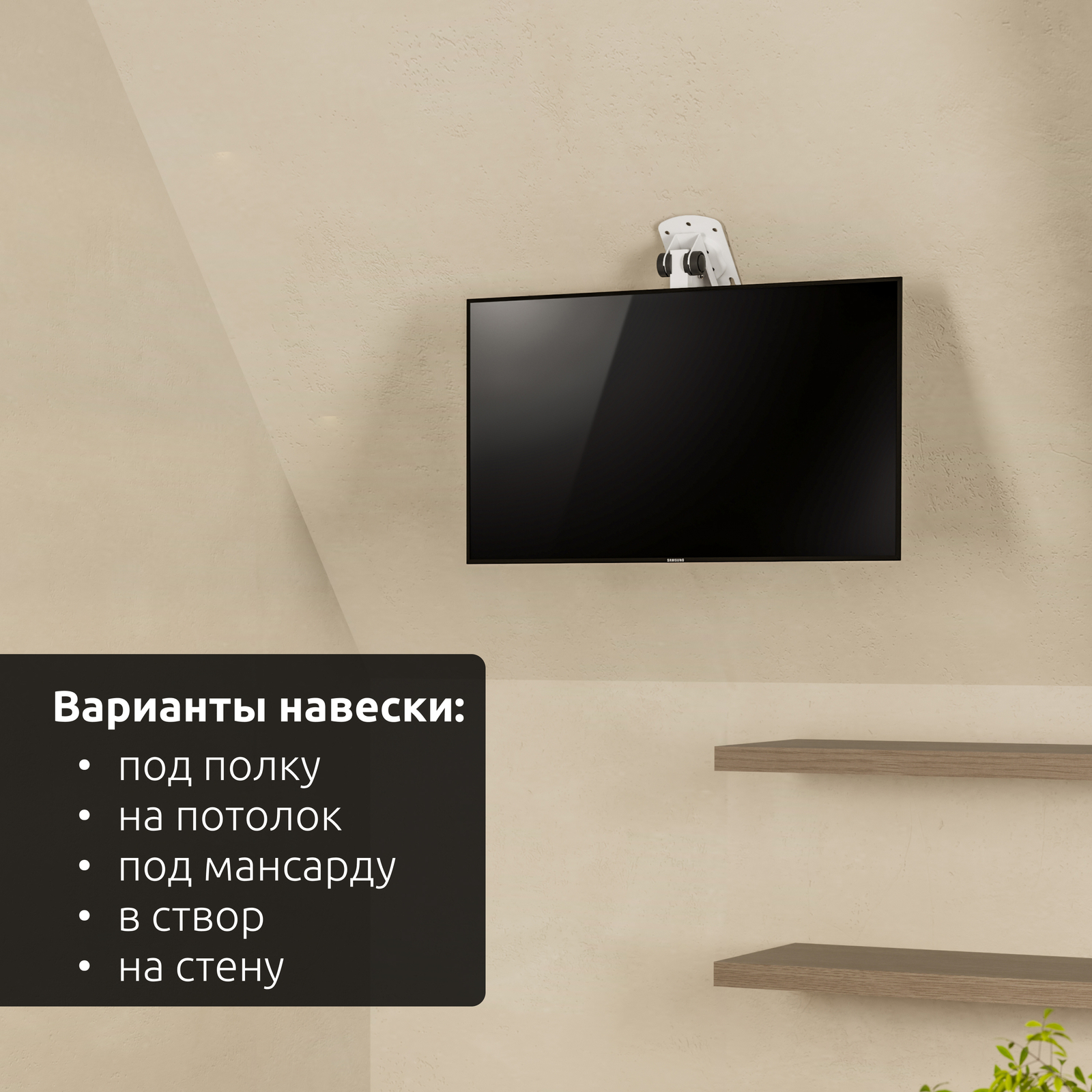 - Тип кронштейна: Складывающийся, полуавтоматический, потолочный, подполочный кронштейн для ТВ или монитора с возможностью навески под мансарду