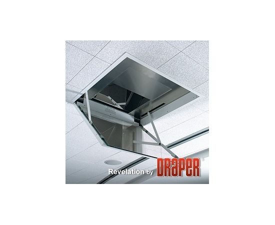 Лифт Revelation производства фирмы Draper постоянно скрывает проектор в потолке и ликвидирует шум от его работы. Вы не увидите проектора и не будете слышать шума от его работы ни до, ни во время, ни после его эксплуатации. Видна только навесная дверца в потолке.