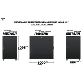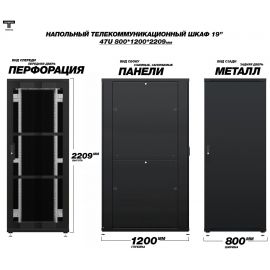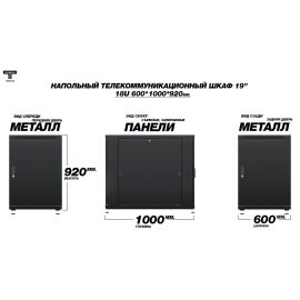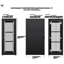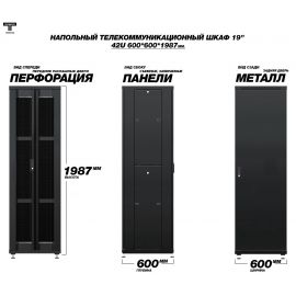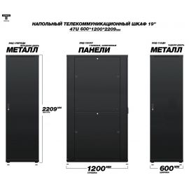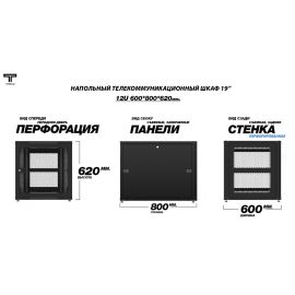 Рэковый шкаф, закрытый ТЕЛКОМ TLN-12.6.8-П.9005, 12U, металлический...