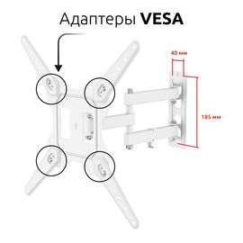 FM1504BW белый Кронштейн для ТВ, наклонно-поворотный, с вылетом, д...
