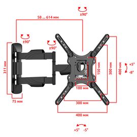 FMG1732 Настенный кронштейн для ТВ и монитора, поворотно-наклонный...