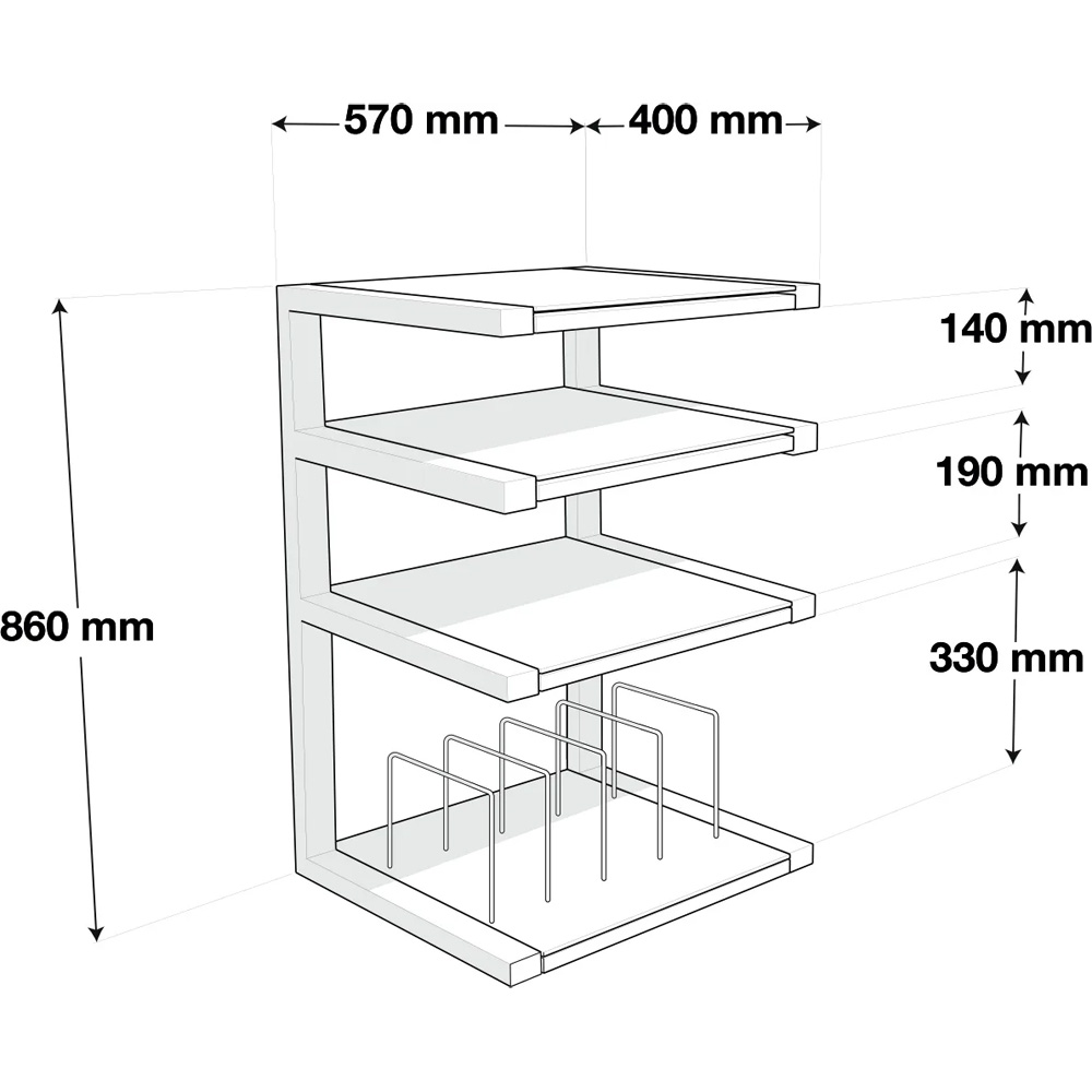 - размер полки (Ш x Г): 570 x 400 мм;