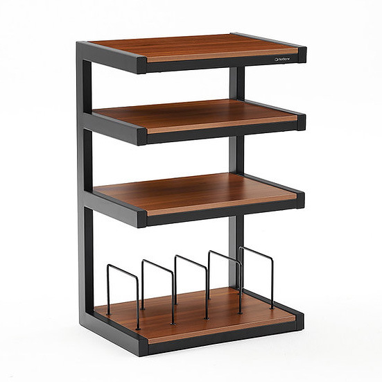 Norstone Esse HiFi Vinyl Black/Walnut - открытая конструкция стоек обеспечивает легкий доступ к коннекторам и свободное прохождение воздушных потоков, которое способствует эффективному охлаждению аппаратов. Благодаря своей форме стойки могут быть установлены вдоль стены, в углах комнаты, на свободном пространстве. Они абсолютно устойчивы и позволяют размещать на них даже чувствительные к вибрации виниловые проигрыватели. Как правило, мебель NorStone Design имеет модульную конструкцию и предполагает несколько вариантов сборки. Портящие общее впечатление кабели могут быть убраны в полое пространство ножек или аккуратно закреплены в тыловой части стоек. Ножки имеют специальное покрытие, предохраняющее пол (в том числе деликатный паркет) от царапин.
