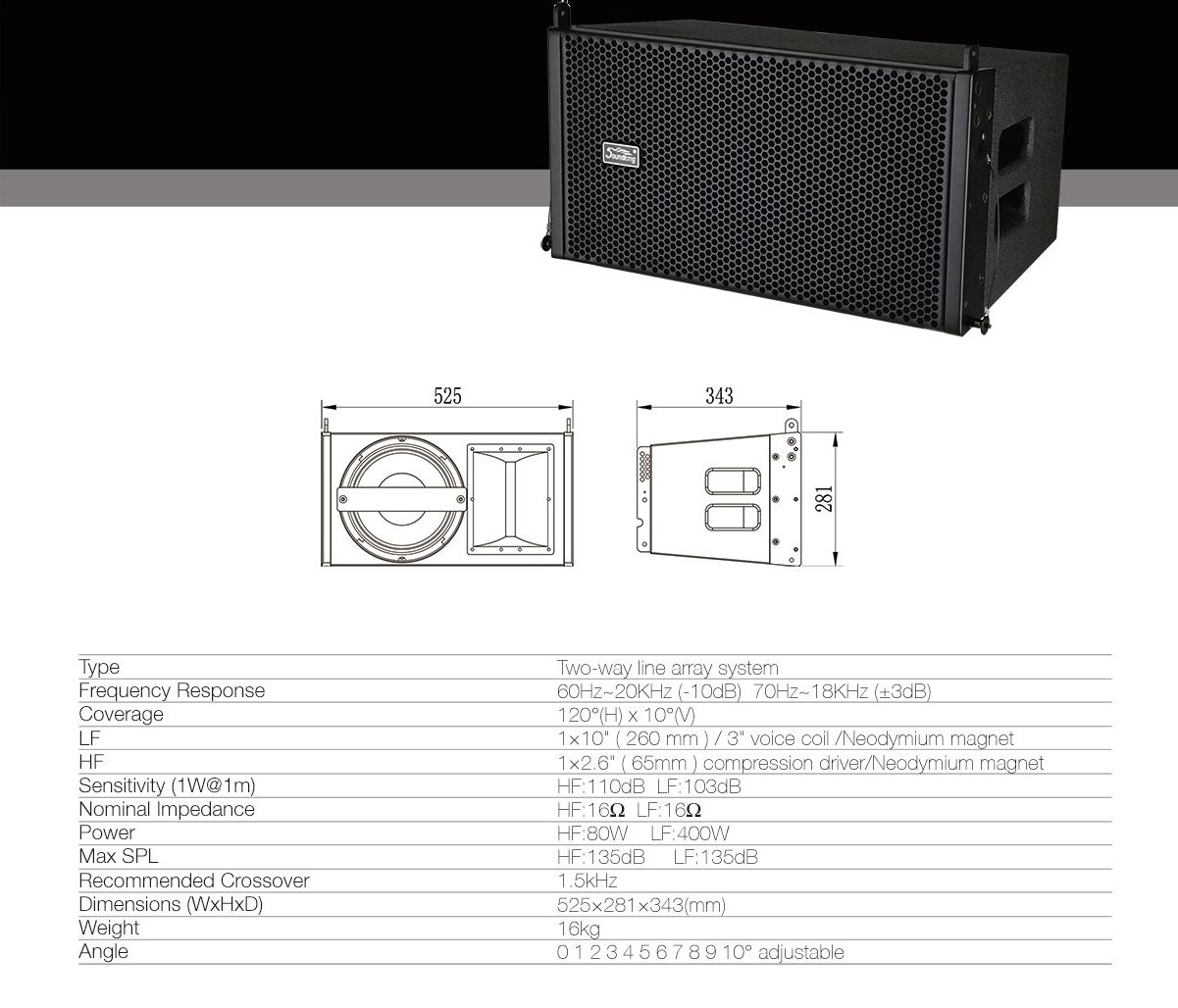 Двухполосная акустическая система G110 имеет частотный диапазон 60Гц-20кГц и плоскую фазо-частотную характеристику. Низкочастотный динамик 10" и высокочастотный драйвер с неодимовыми магнитами обеспечивают низкий вес системы и высокий уровень звукового давления.