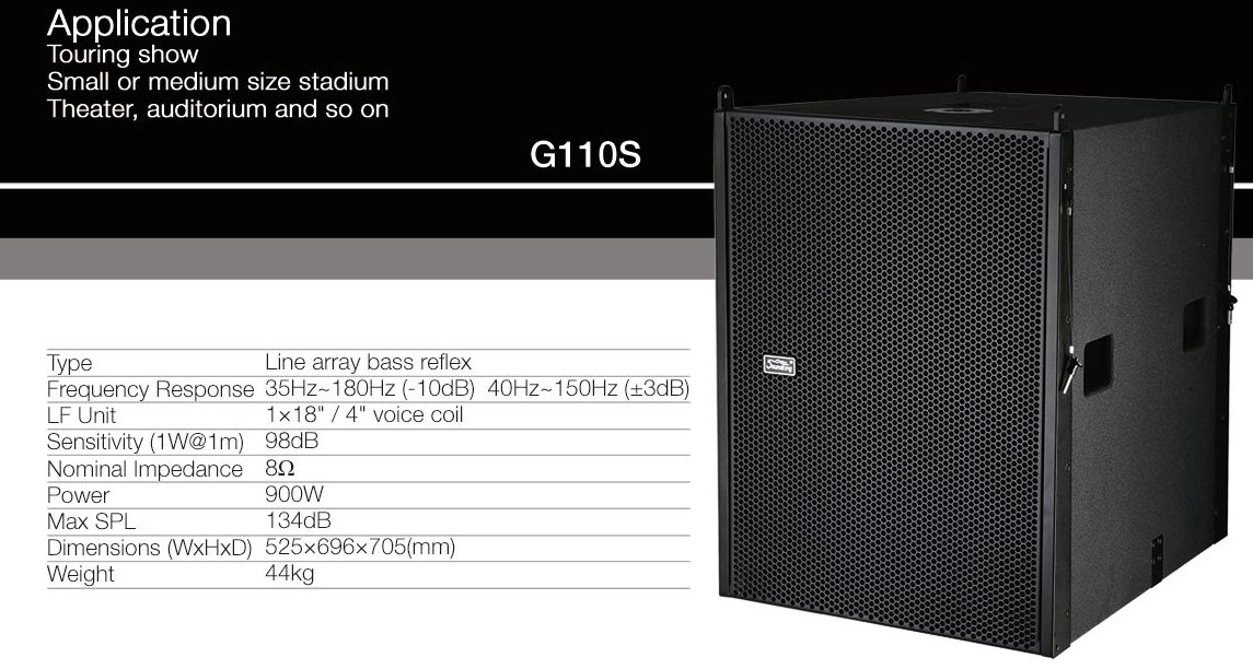 Сабвуфер G110S использует неодимовый магнит, что позволяет преодолеть недостаток традиционных сабвуферов — шум воздуха при высокой динамике.