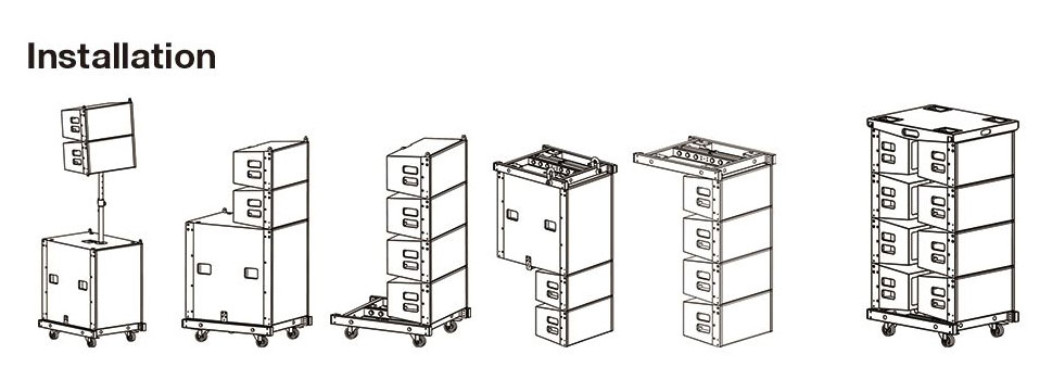 Модель может быть подвешен в составе линейного массива, установлен на полу или на стойке для работы с G110.