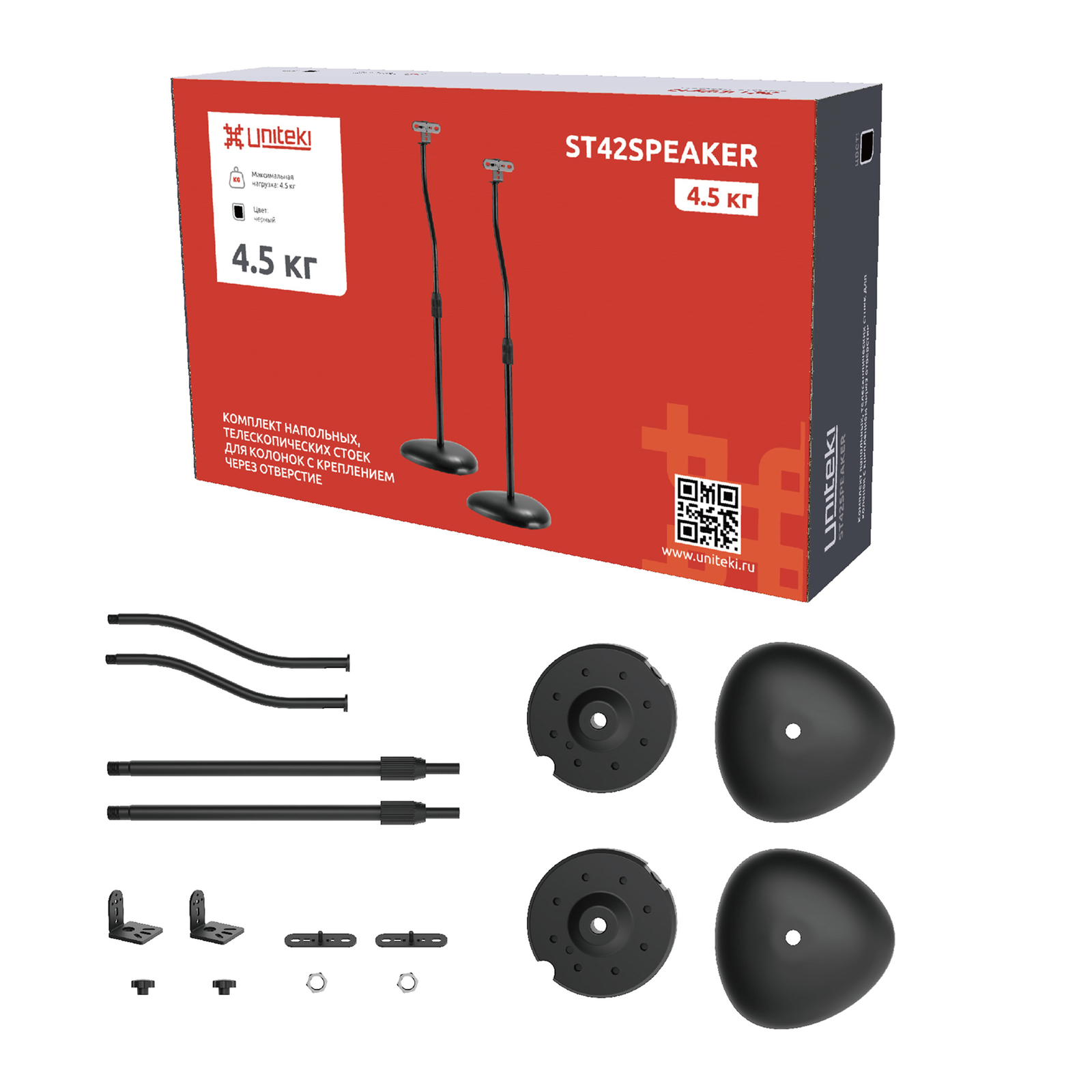 UNITEKI ST42SPEAKER поставляются в оригинальной упаковке, с подробной инструкцией, дополнительными и набором крепежа для инсталляции.