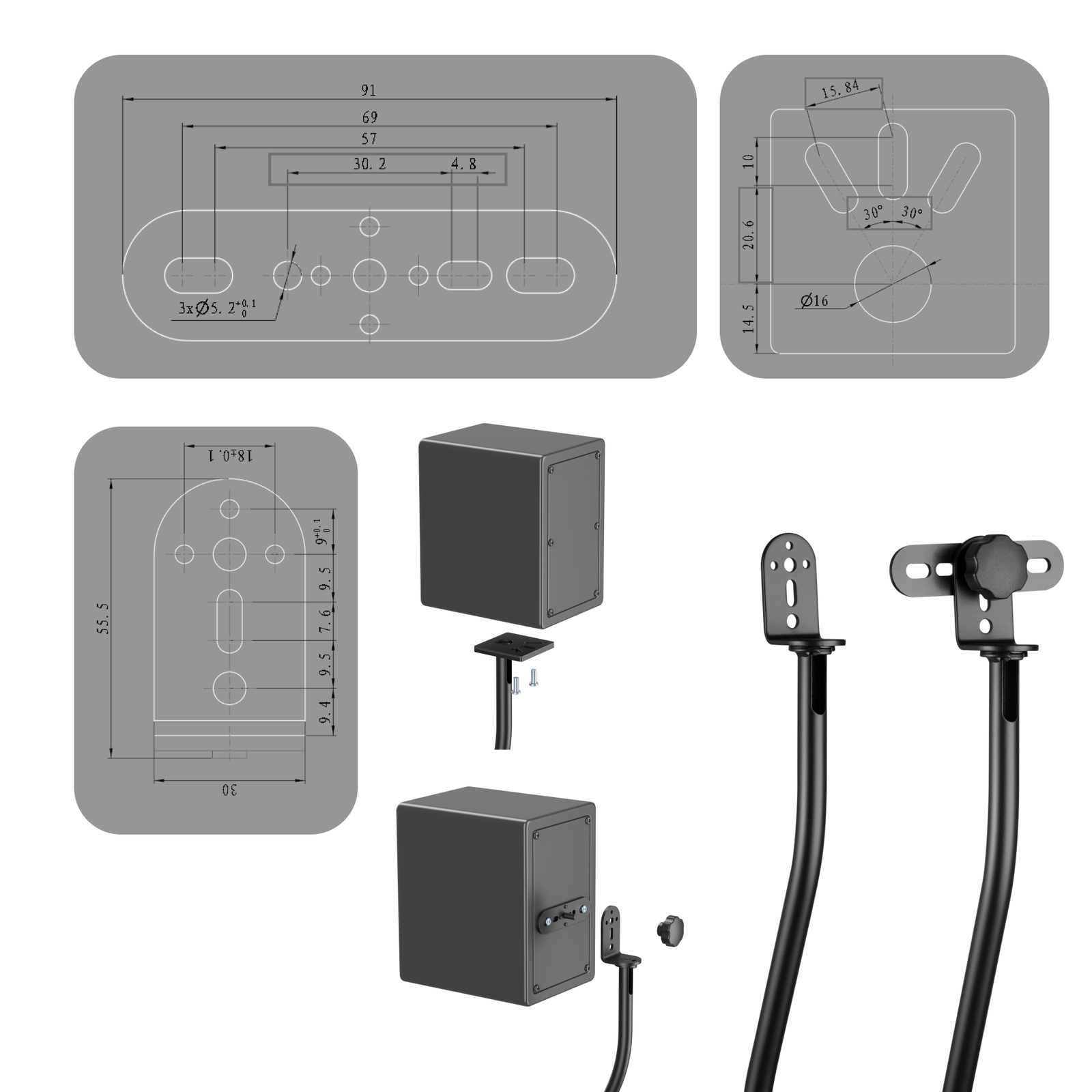 - Размер отверстий в инсталляционных панелях под болты в колонках: М4, М5, 1/4"