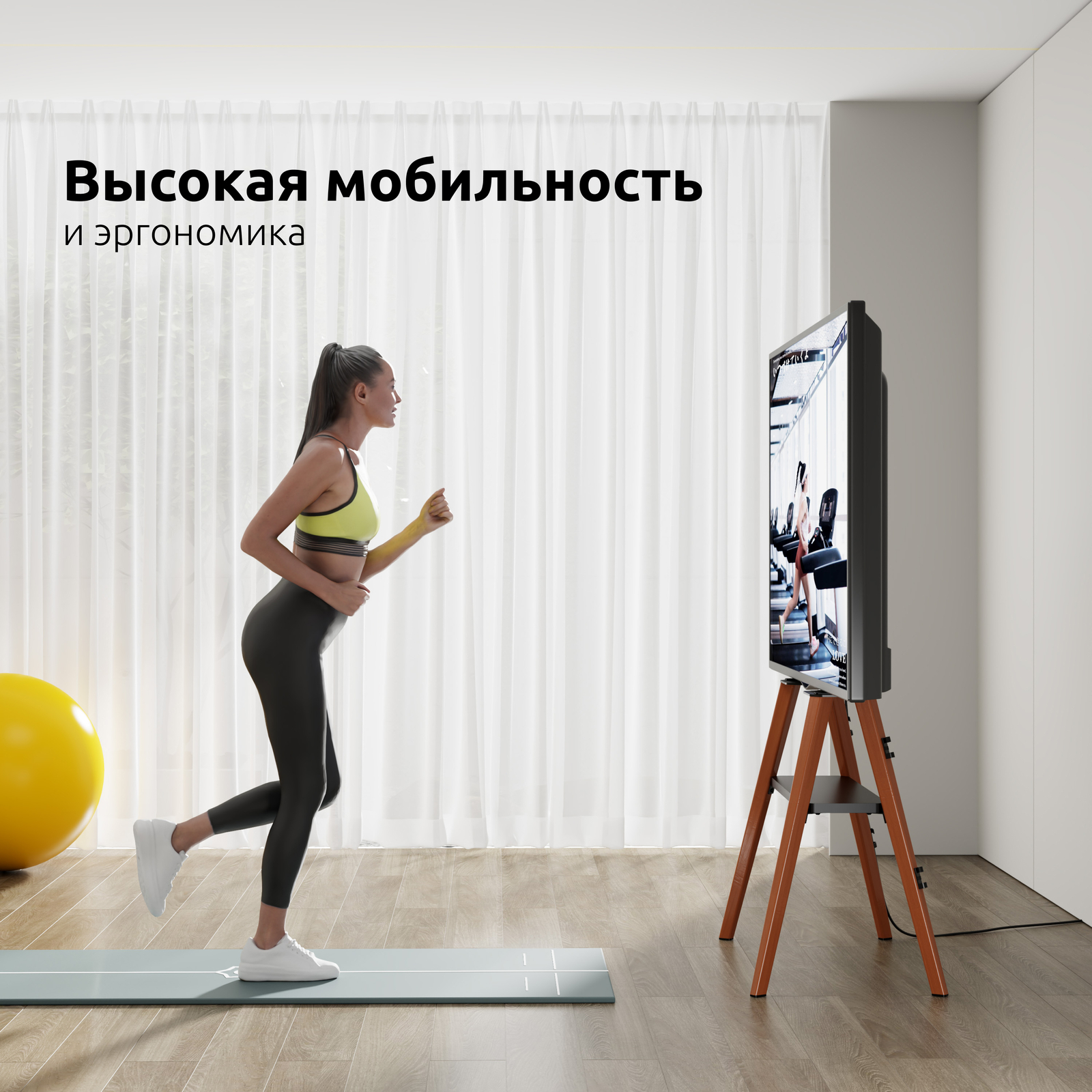 Компактность и мобильность стойки позволят удобно организовать пространство, а небольшое расстояние между ножками в глубину (37 см.), даст возможность разместить стойку по стене, даже в самом узком пространстве.