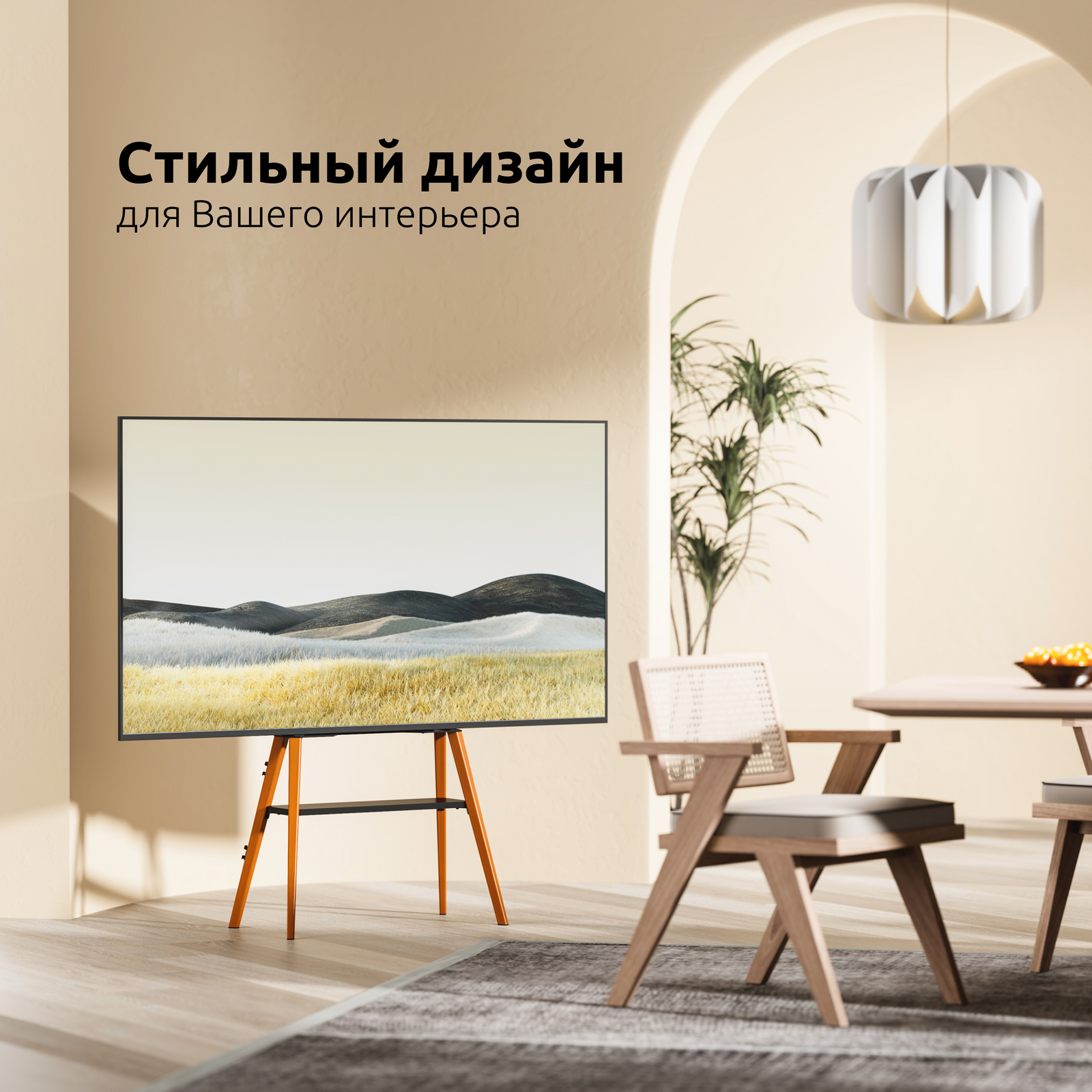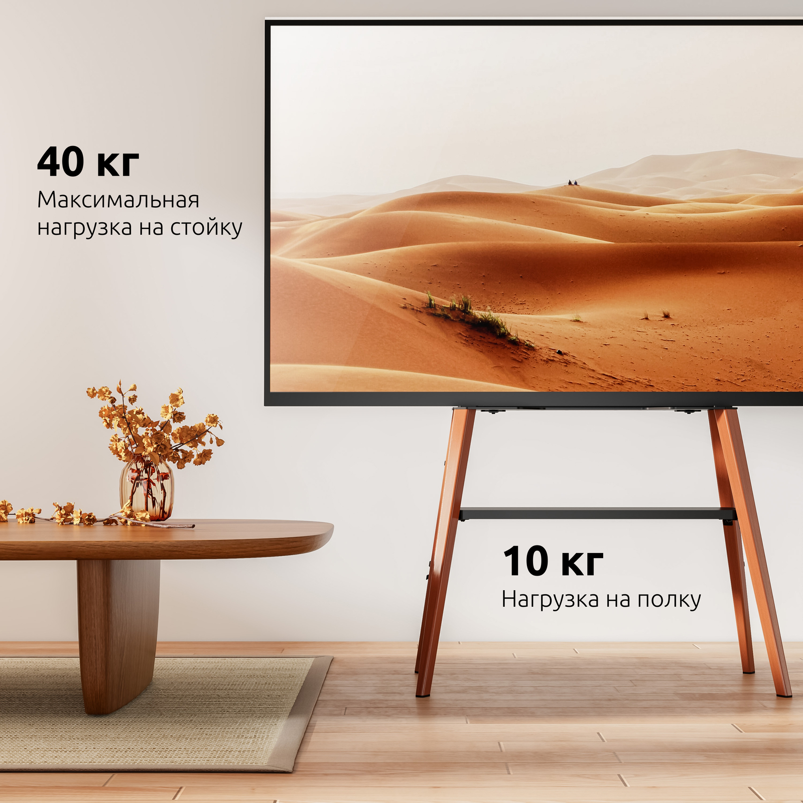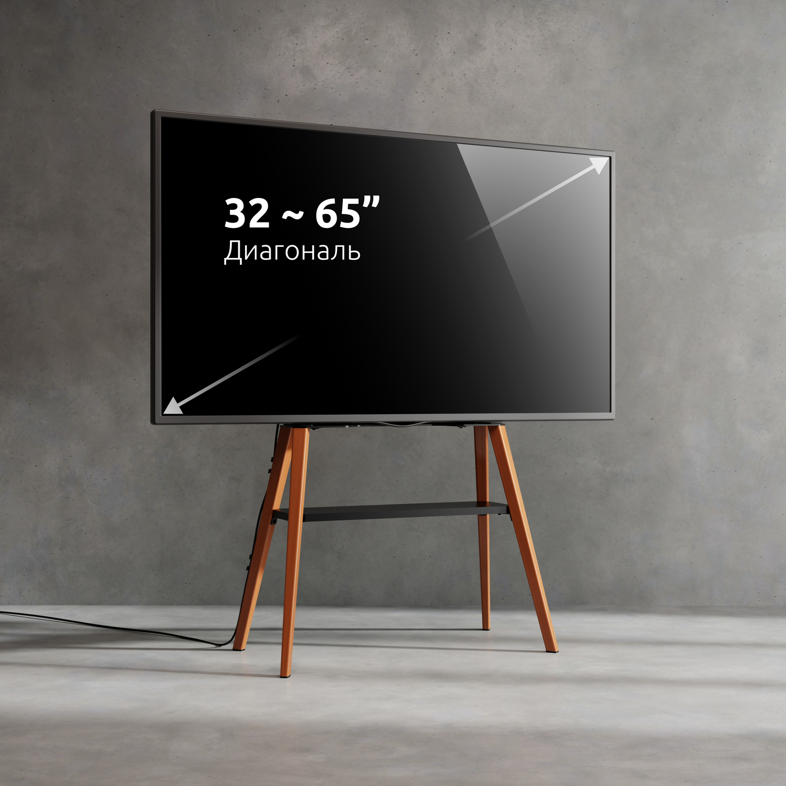 Дизайнерская, интерьерная стойка для телевизора, мобильная, напольная с полкой, диагональ 32-65 дюйма, в Датском стиле