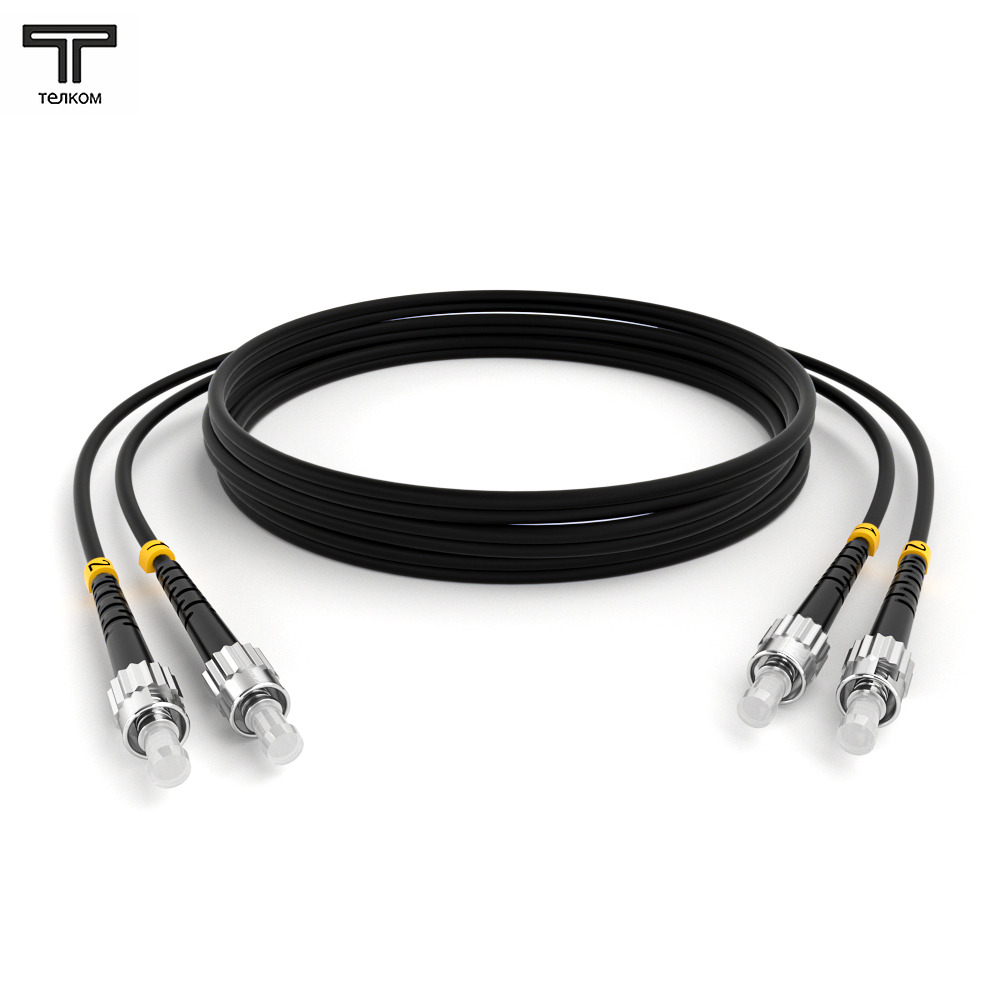 ТЕЛКОМ ШОС-2х3.0-2ST/U-2ST/U-MM50-12м-LSZH-BK Шнур оптический duplex ST/UPC-ST/UPC 50/125 OM2 многомодовый MM (3.0мм) LSZH, цвет черный, длина 12м