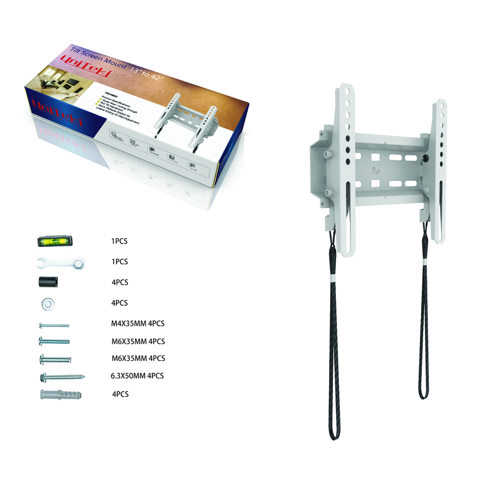 Настенный наклонный кронштейн UNITEKI TM1602 в белом цвете предназначен для телевизоров и мониторов с диагональю от 13 до 43 дюймов (см. 33~108,5).