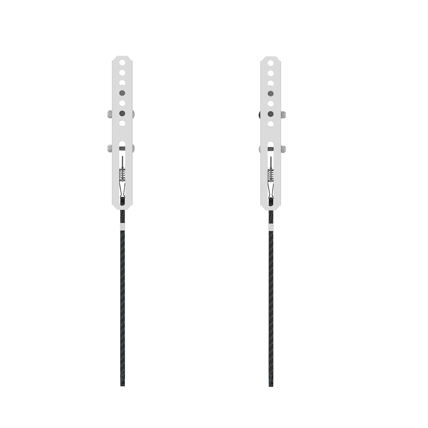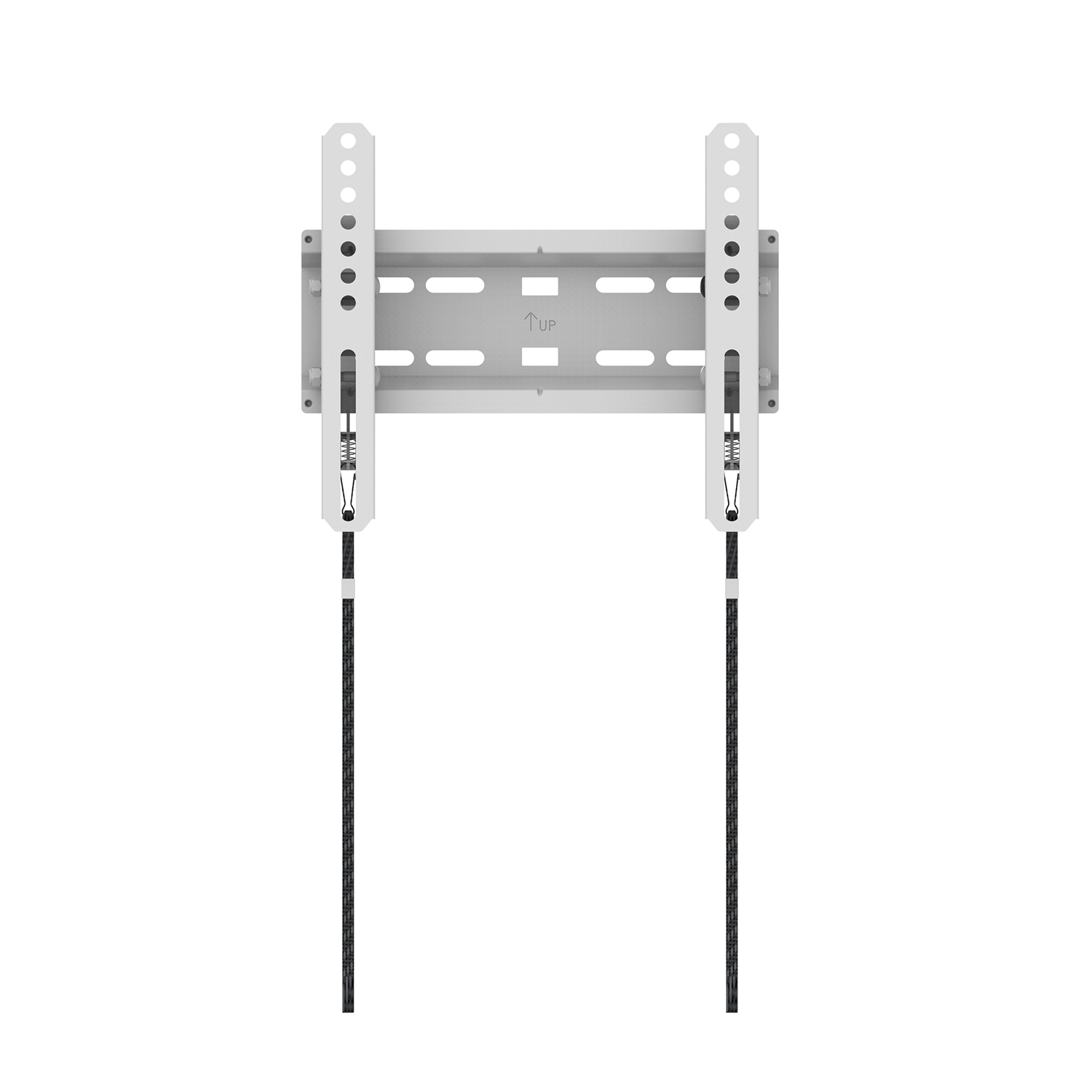 Конструкция предусматривает крепление телевизора к настенной площадке кронштейна с помощью защелки и удобных для использования шнурков.