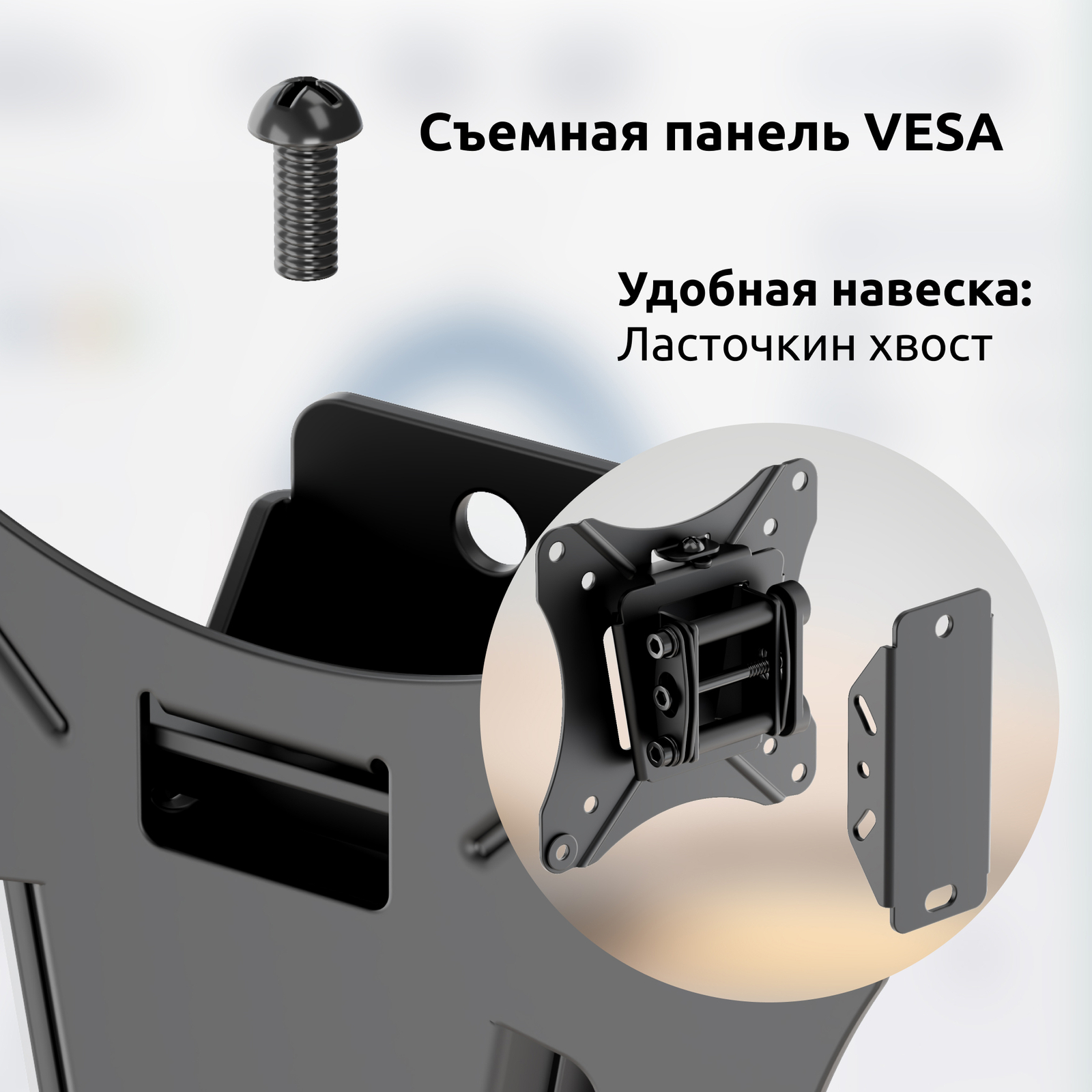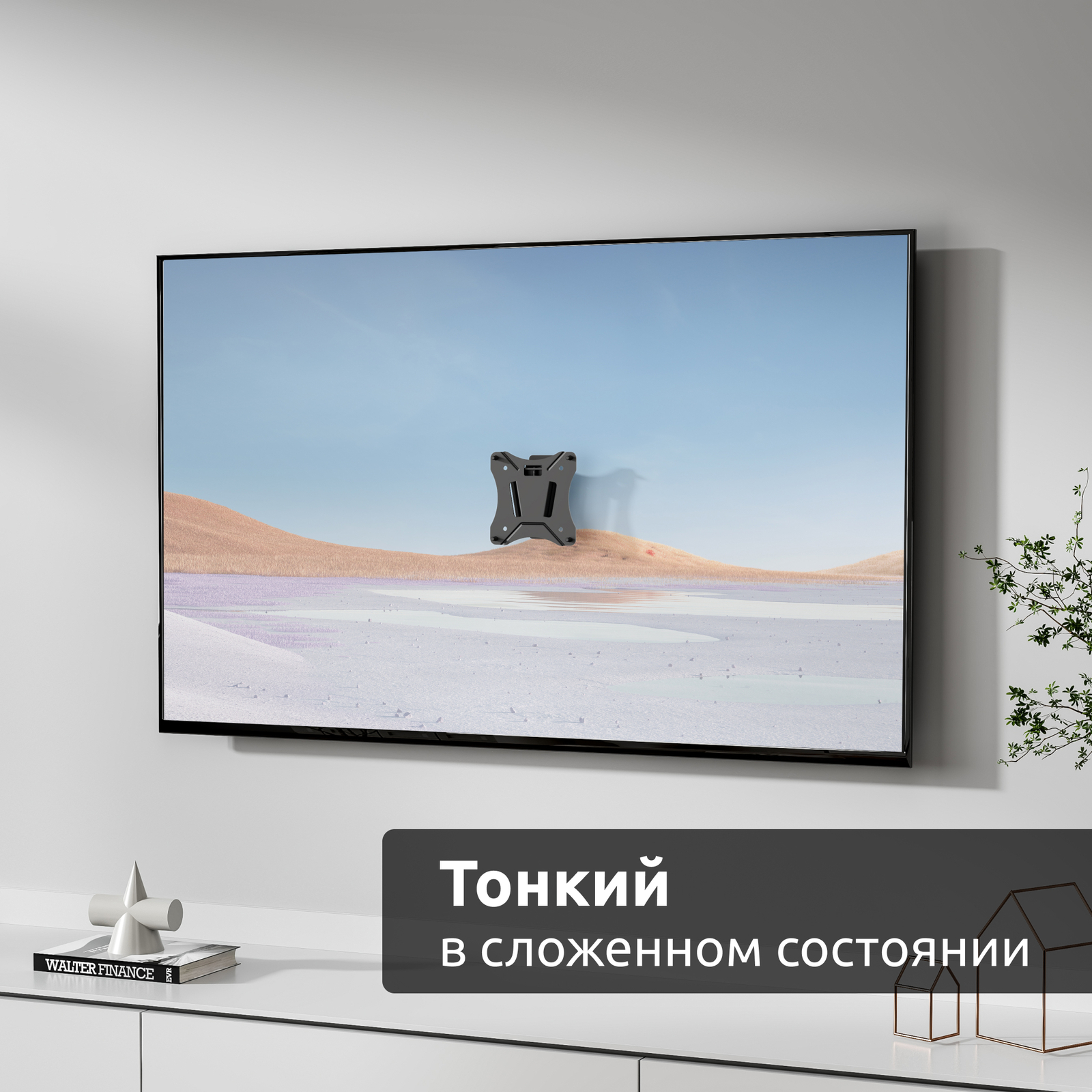 - Совместимость: Кронштейн подходит для большинства телевизоров и мониторов популярных брендов, среди которых Samsung, LG, Sony, KIVI, Tcl, Xiaomi Mi, SUPRA, Panasonic, Hyundai, Erisson, Asano, Horizont, JVC, Thomson, Sharp, Toshiba, Skyworth, BBK, AVEL, Витязь, Веко, BQ, DEXP, SkyLine, Pioneer, Rolsen, Harper, Hisense, Hitachi, Polarline, Prestigio, Telefunken и других.